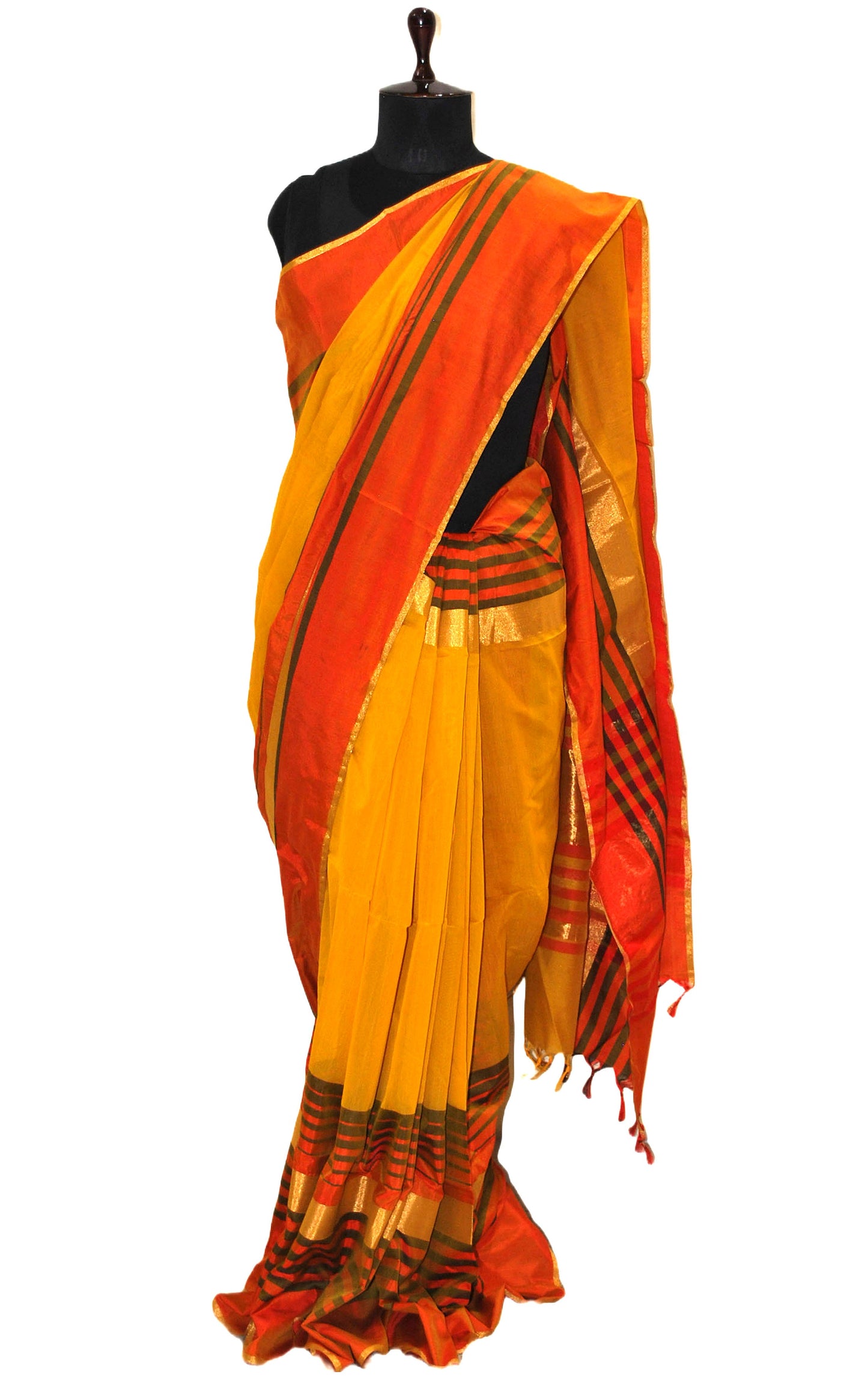 Maheshwari Cotton Silk Saree in Yellow, Red and Black