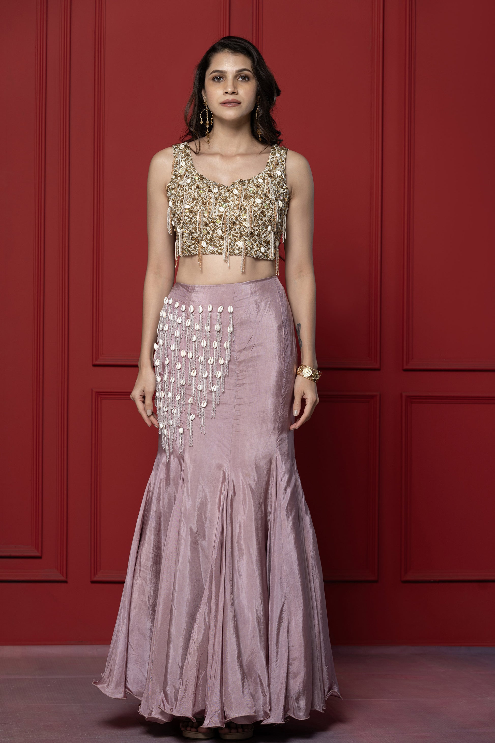 Mauve Fish Cut Upada Skirt Set