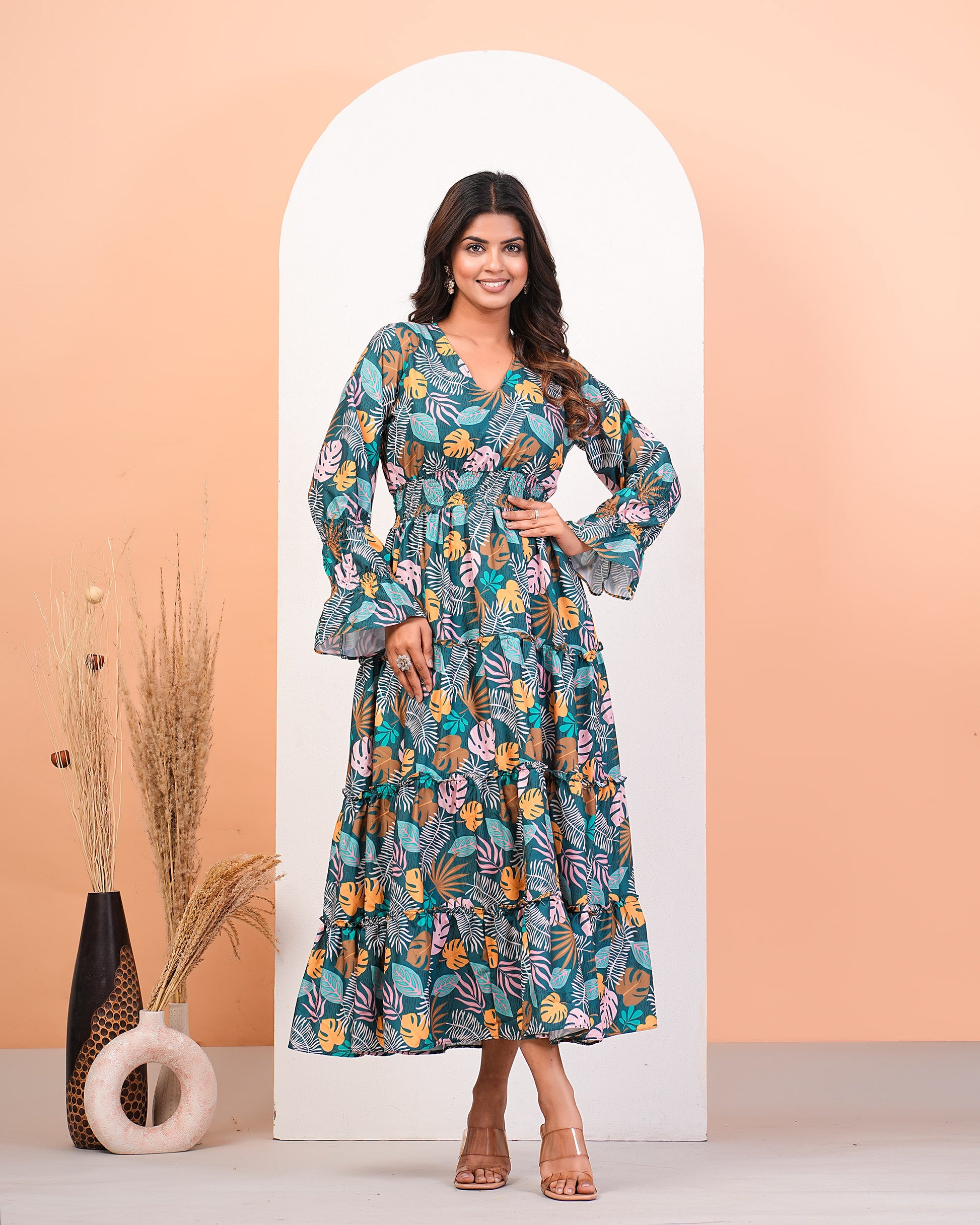 Multicolour Digital Printed Layered Dress