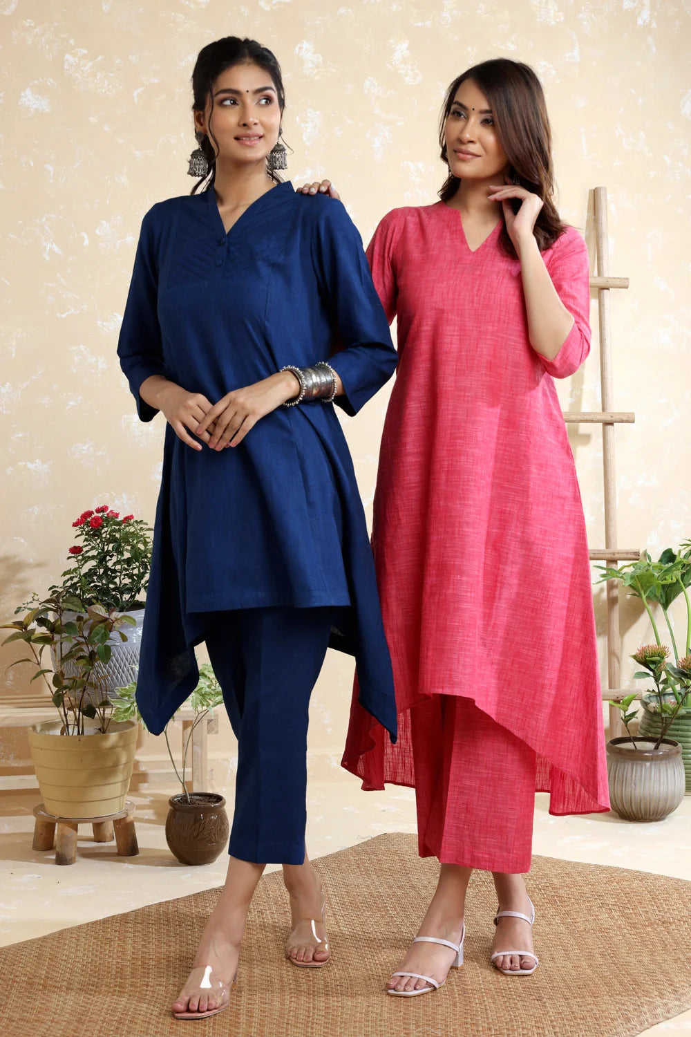 Elevate your style with our Navy Blue Khadi Co-ord Set, featuring exquisite detailing on the half-collar neck and an upside-down kurta design. Crafted from premium Khadi fabric, this set combines traditional craftsmanship with contemporary fashion. The breathable material ensures comfort, making it perfect for both casual and semi-formal occasions. Add a touch of elegance to your wardrobe with this unique and stylish ensemble.