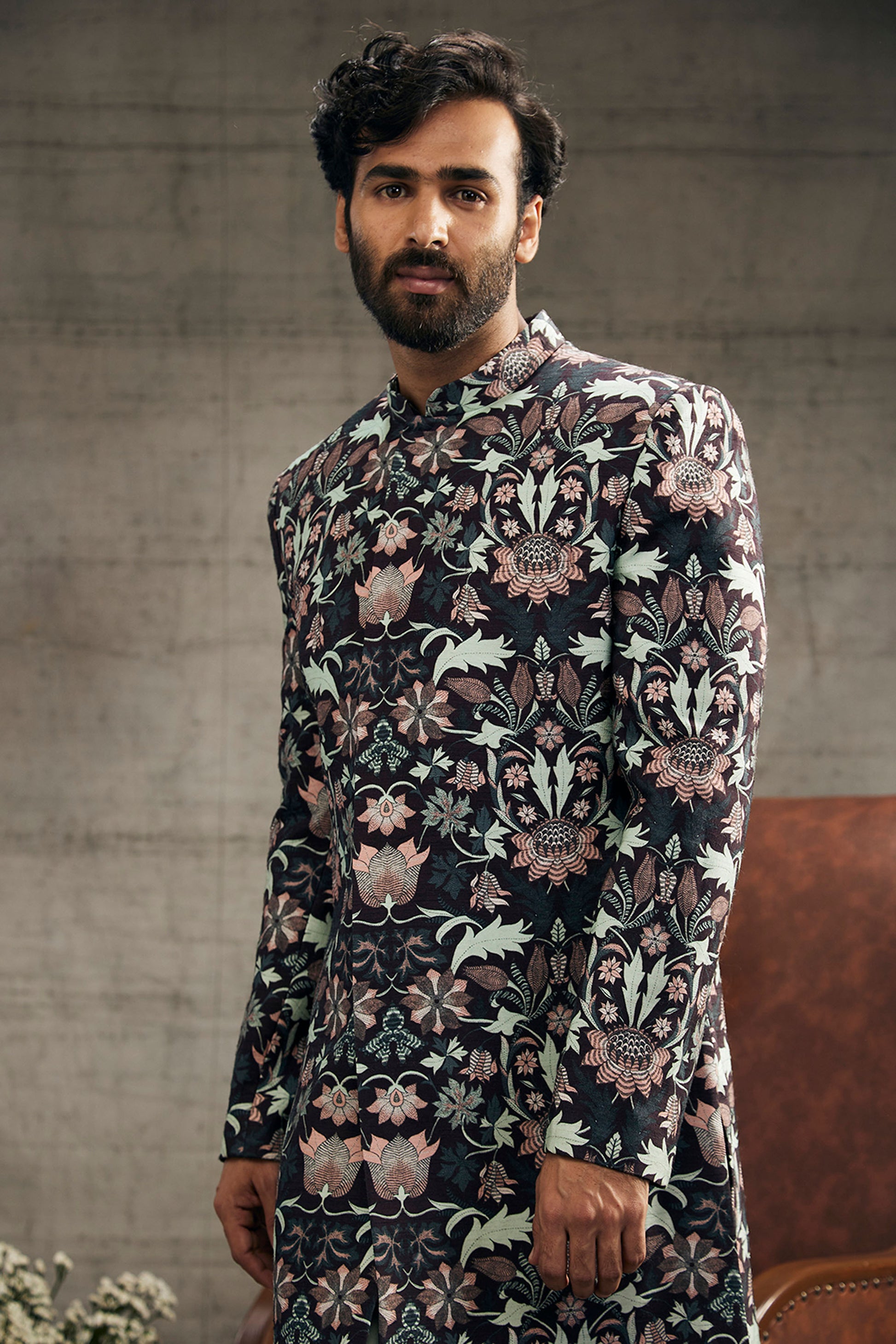 Multi Color Muslin Slub Pastel floral printed sherwani set