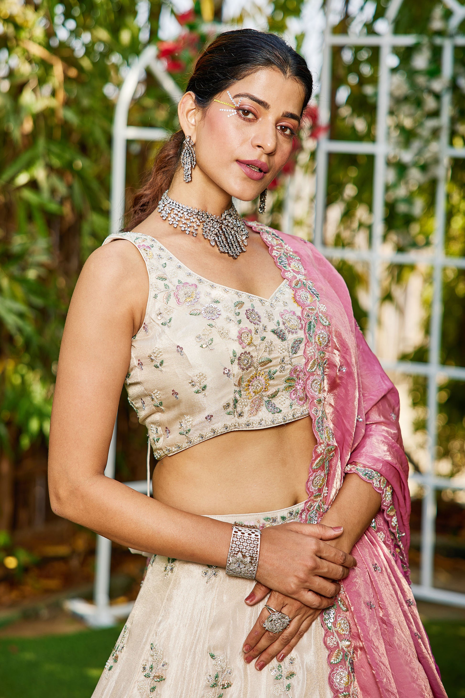 Pink colour tissue Fabric with Sequins & Thread embroidery Lehenga choli & Dupatta