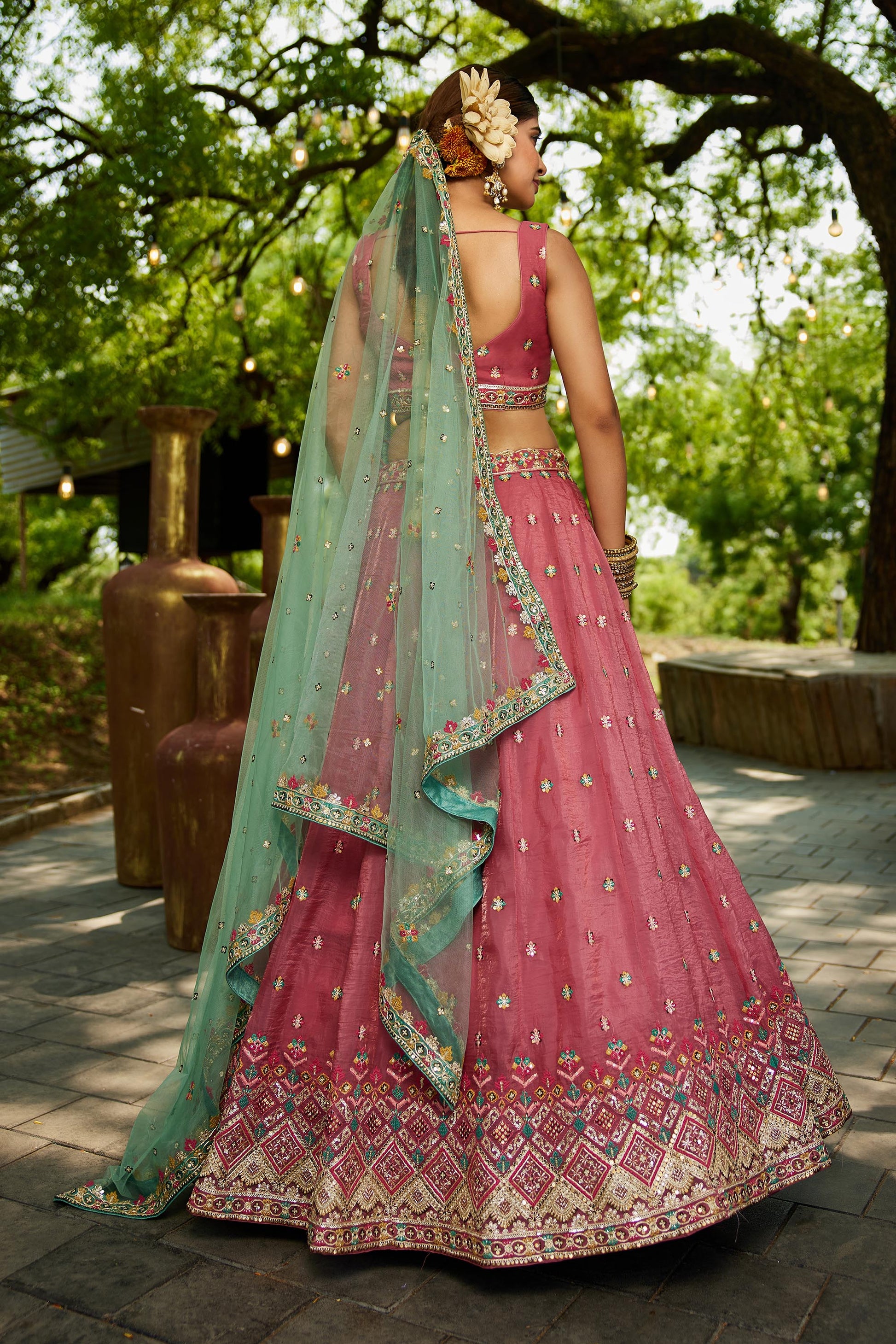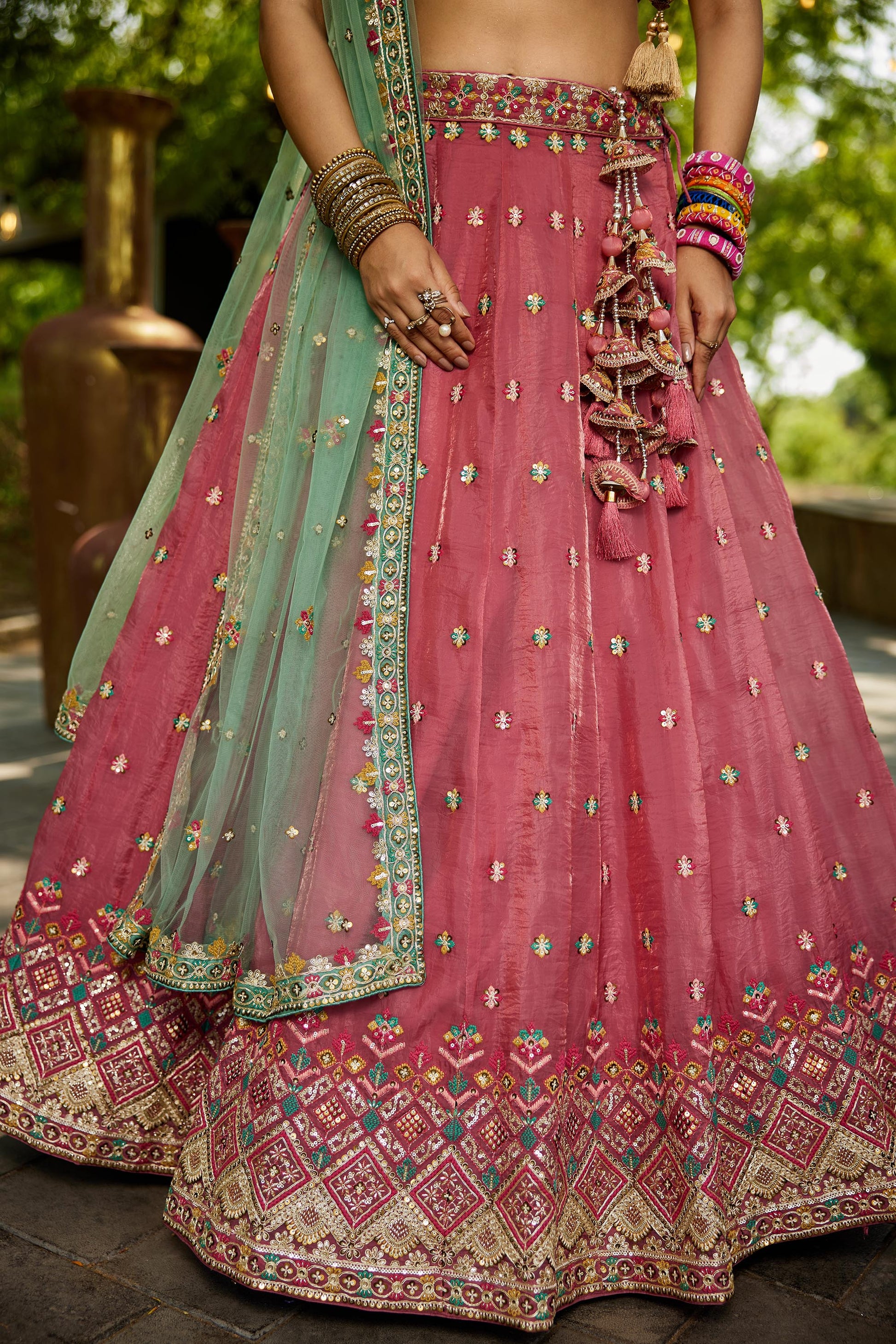 Pink colour Tissue Sequinse embroidery Lehenga choli & Dupatta