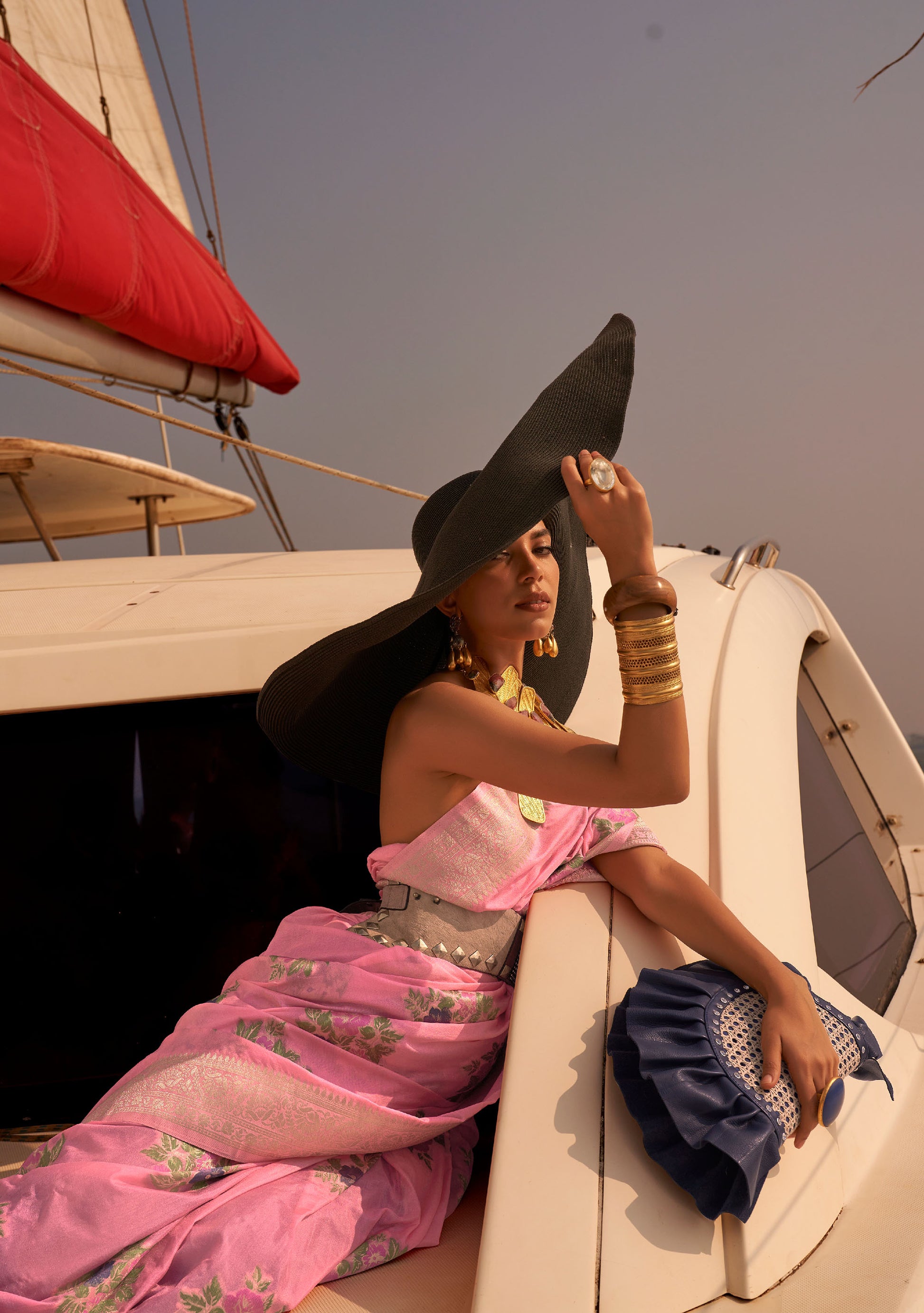 Pink Khibaa Silk Chinnon Nylon Handloom Saree