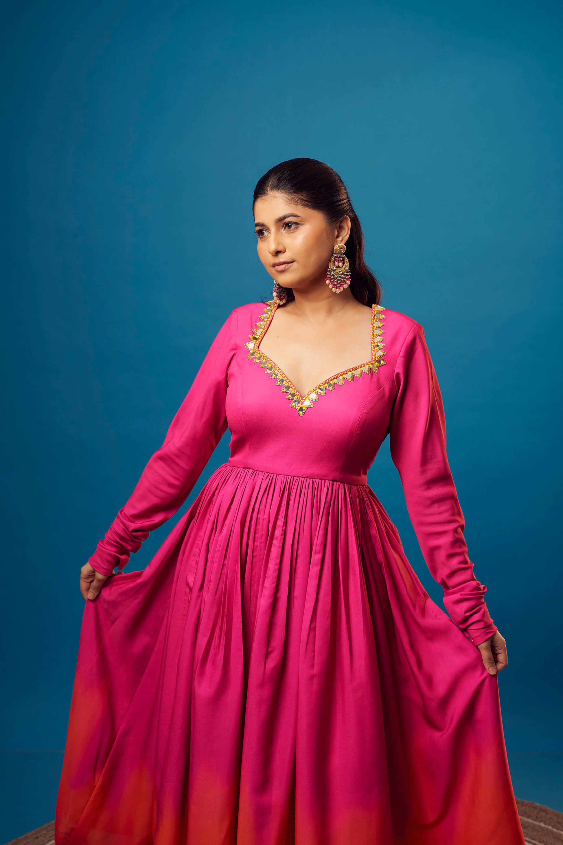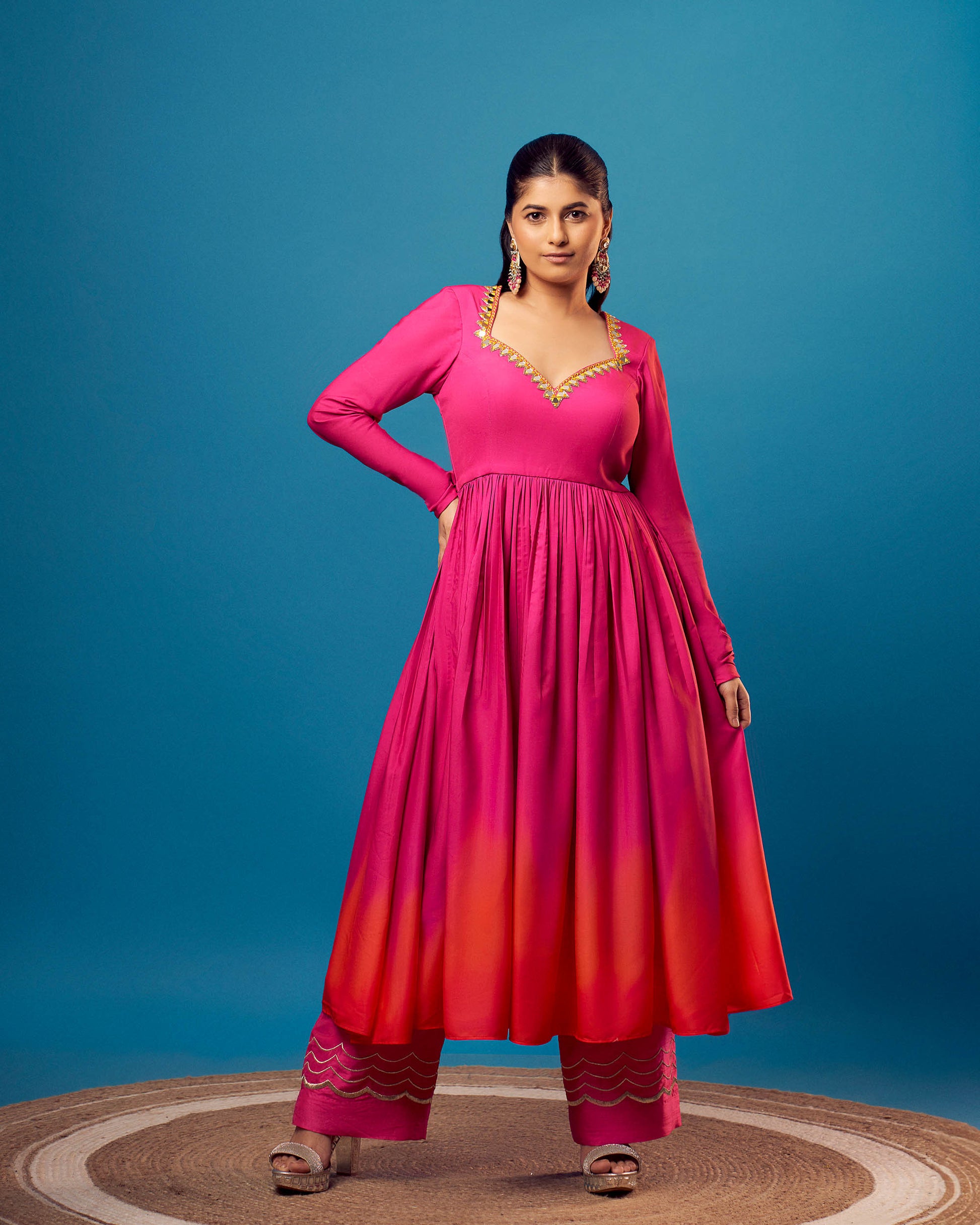 Pink-Orange Ombre Sweetheart Anarkali Set