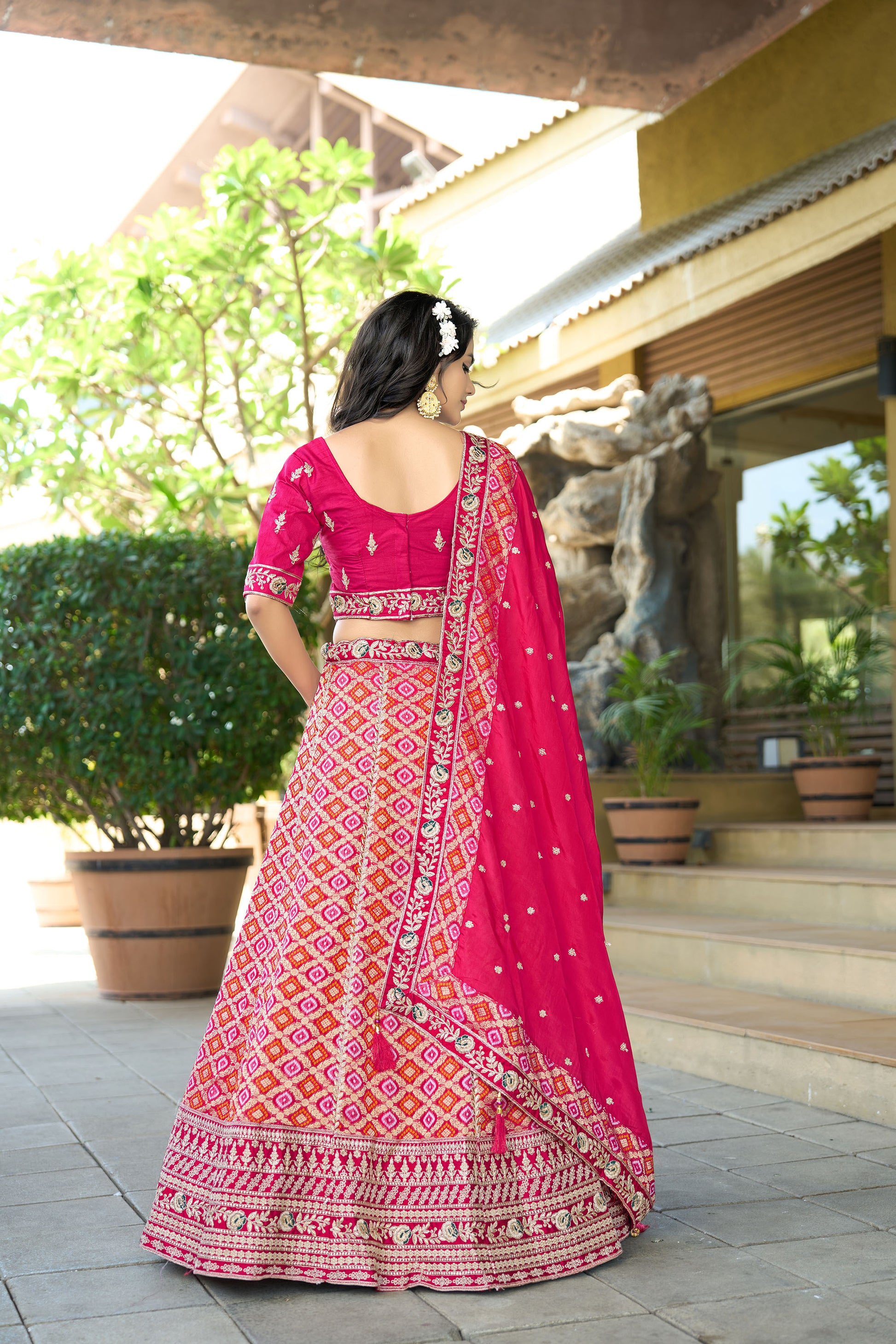 Looking for something a little out of the ordinary? We've got just the thing! This Pink Viscose & Dola Silk Gota Work Wedding Lehenga is perfect for those who want to make a statement. With its beautiful gota embroidery and pink color, this lehenga is sure to make you the center of attention. A Bridesmiad would look gorgeous in this outfit. It is suitable for any occasion, such as wedding receptions, engagement parties, and sangeets. So don't wait any longer, add this Pink Viscose & Dola Silk Gota Work Wedding Lehenga to your wardrobe today!