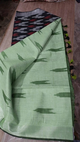 Pista Ikat Natural Dyed - HandCrafted - Soft Linen Saree