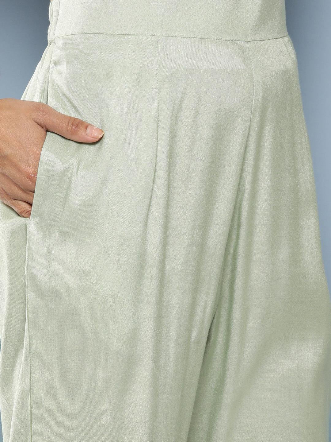 Poly Green Chanderi Floral Printed Kurta Pant Set