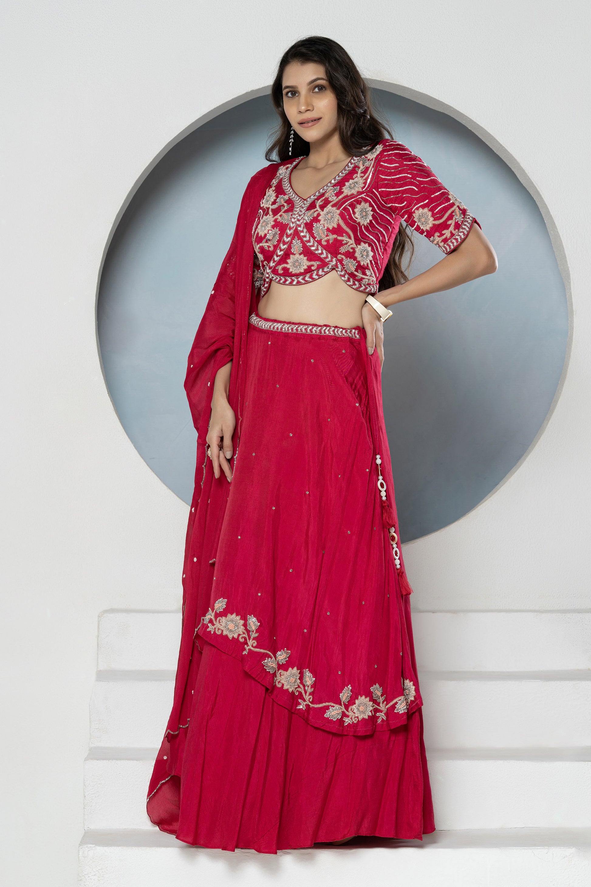 Rani Pink Layered Dola Silk Bridesmaid Lehenga Set