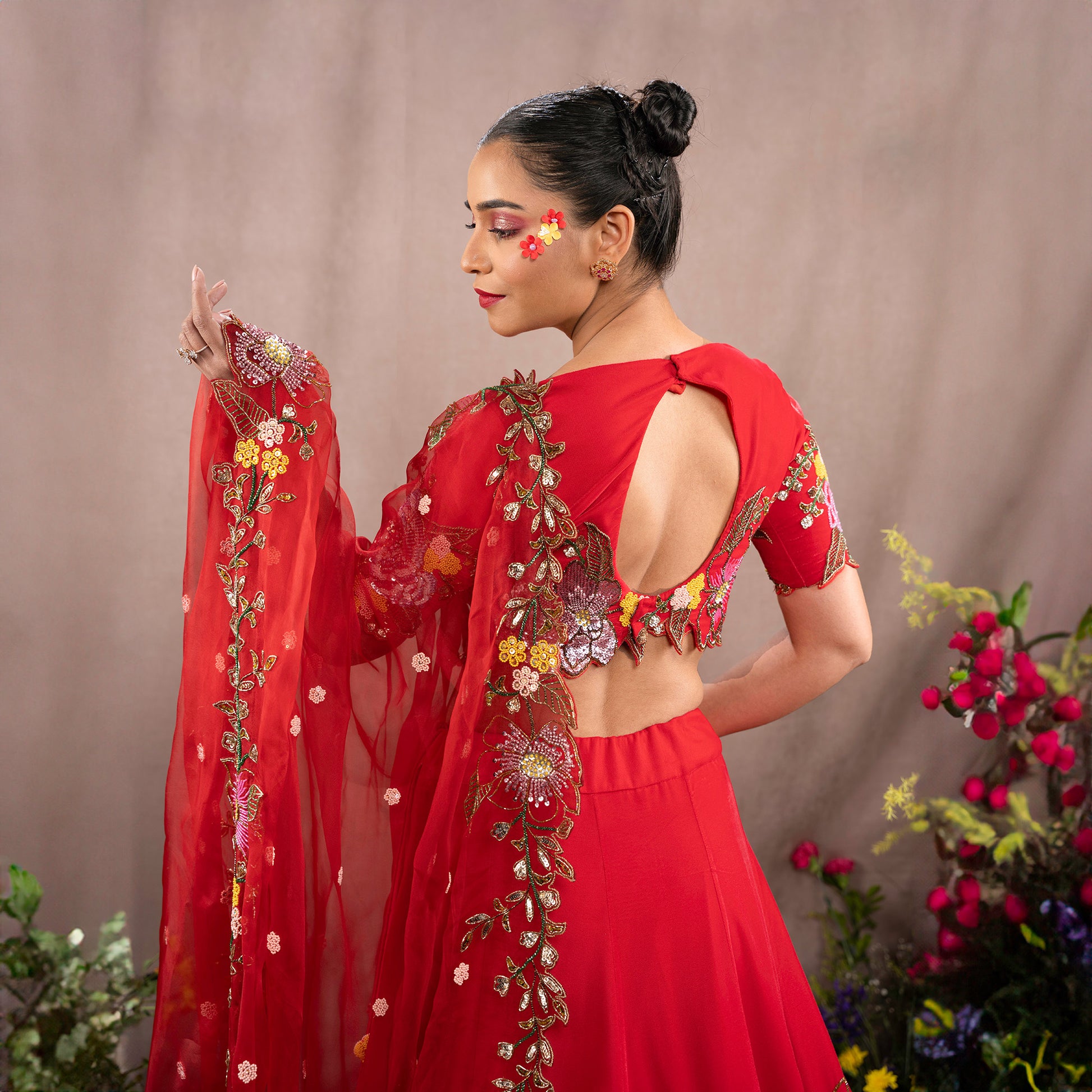 Dupatta : Red Organza with work Border