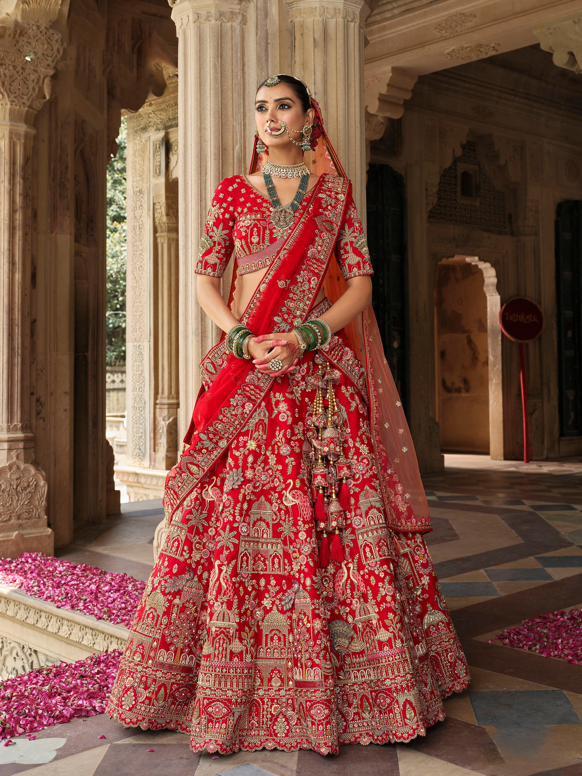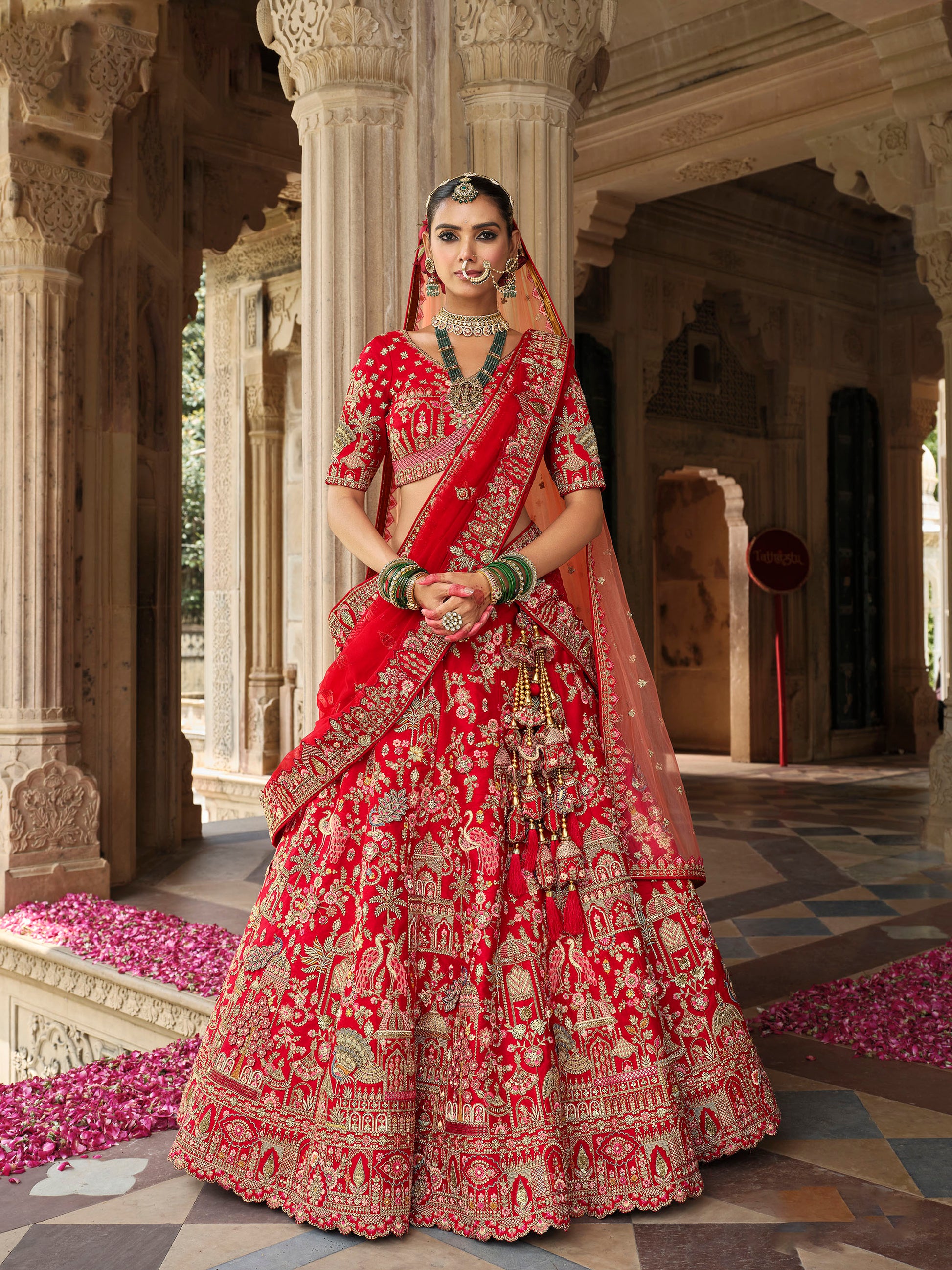 Red Hand Embroidery Silk Bridal Lehenga for Wedding