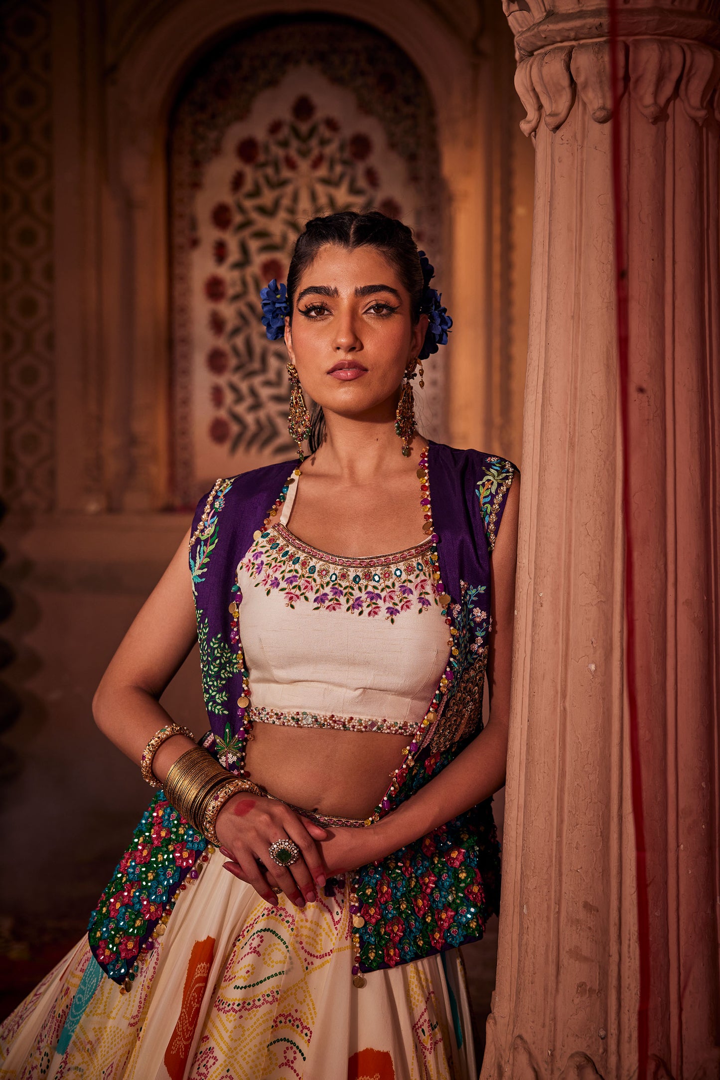 • Fabric: Skirt -  Crepe, Bustier : Silk , Jacket : Raw Silk