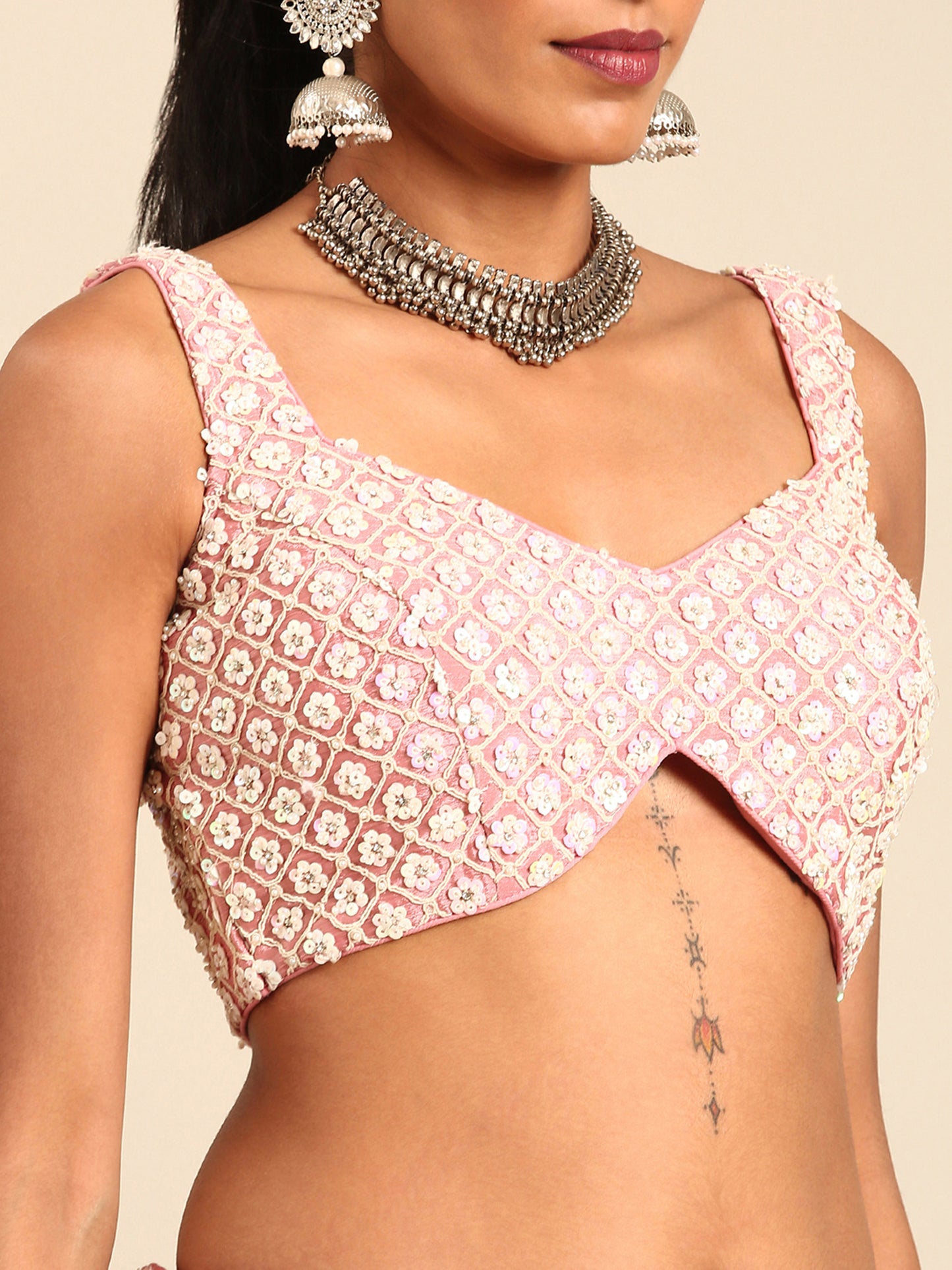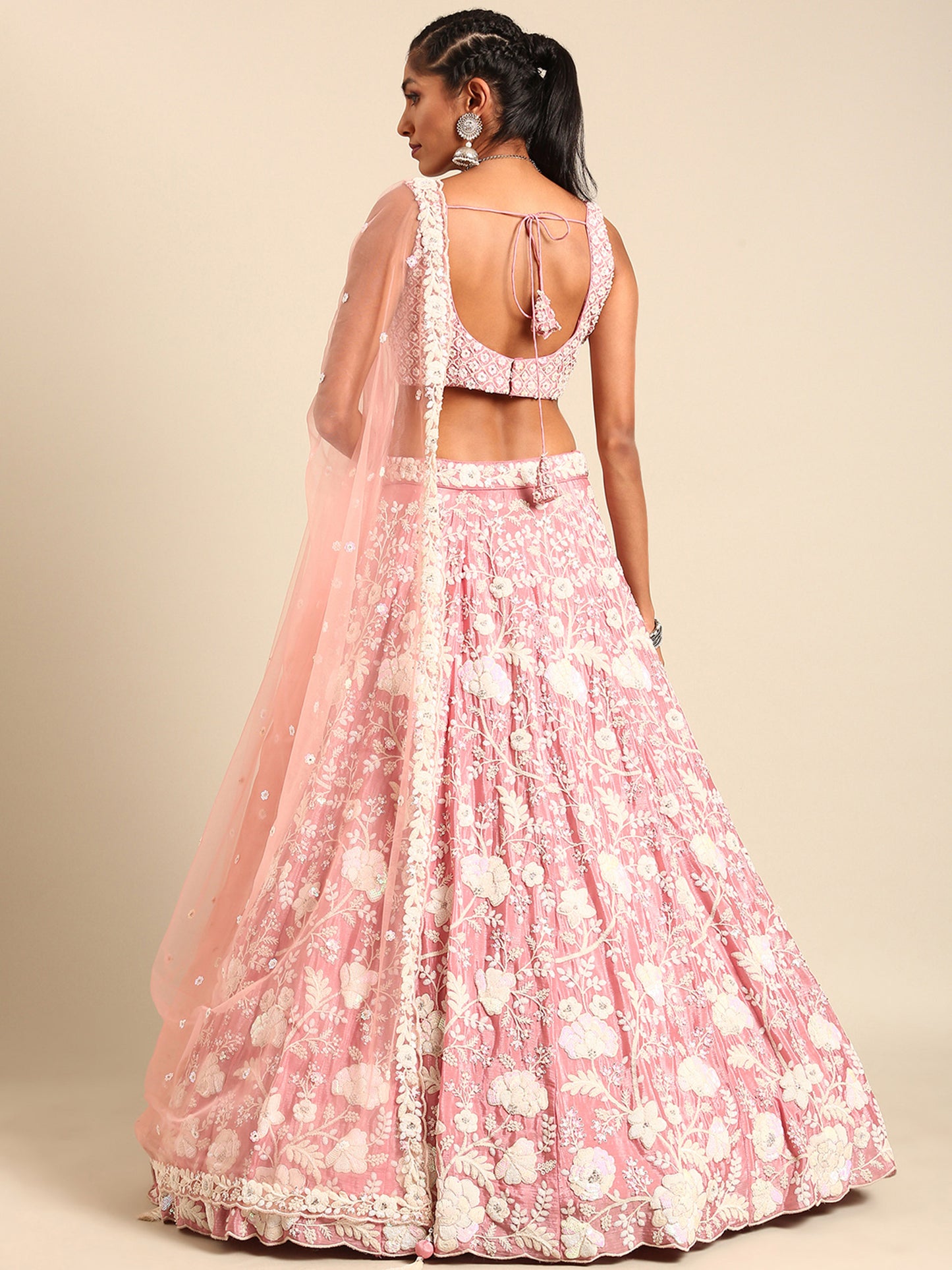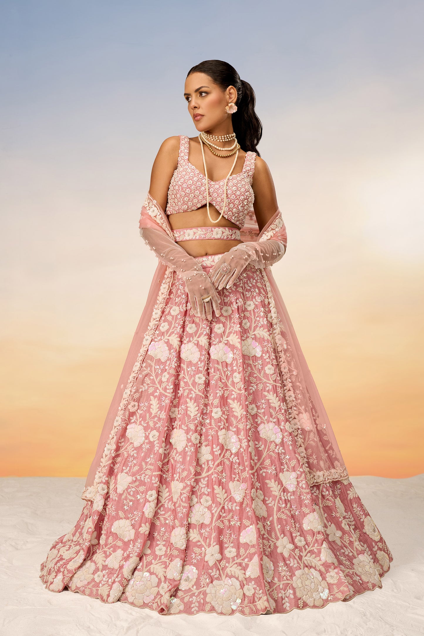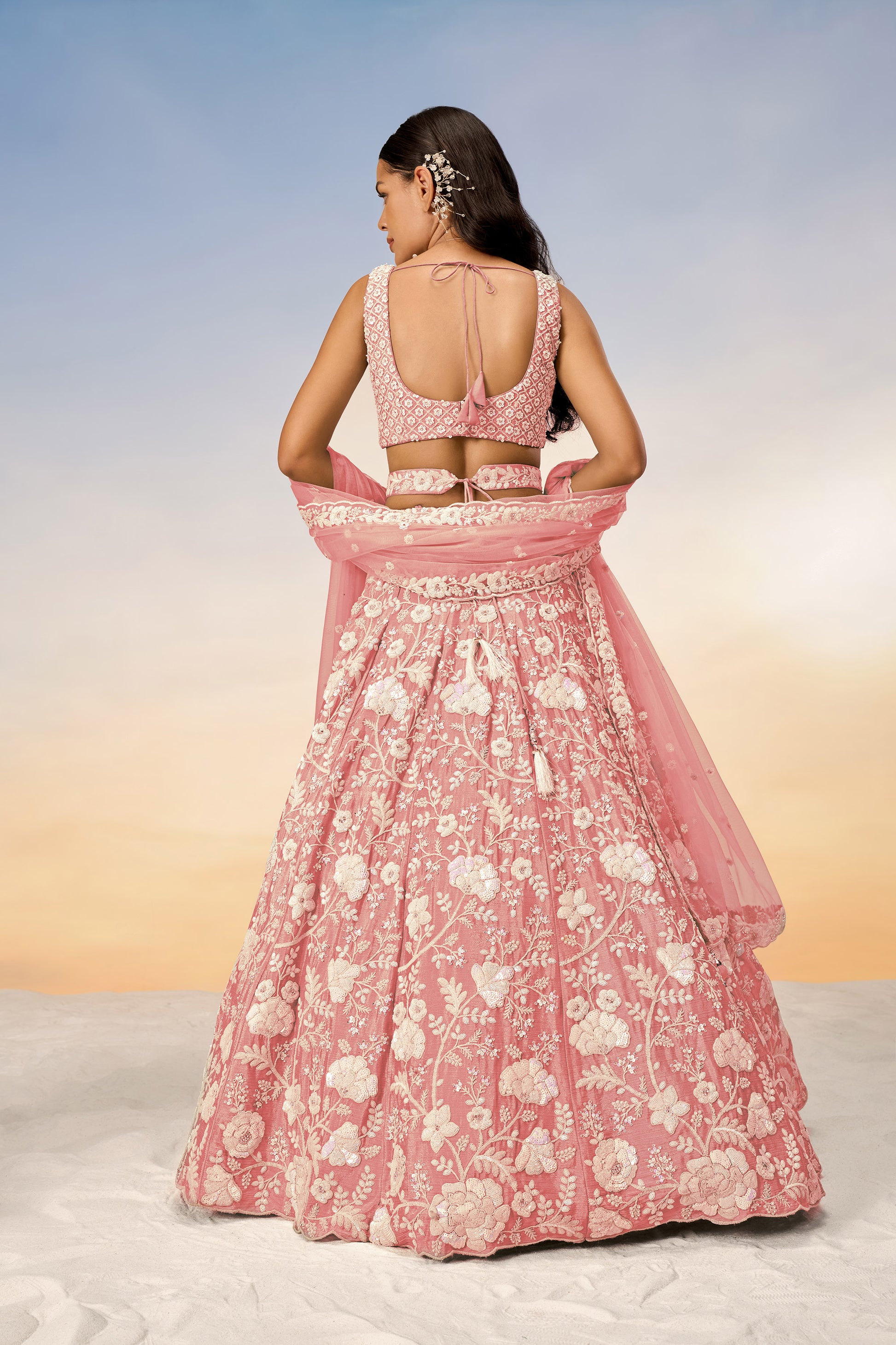 Rose Gold Chinon Sequins and Zarkan embroidery Lehenga