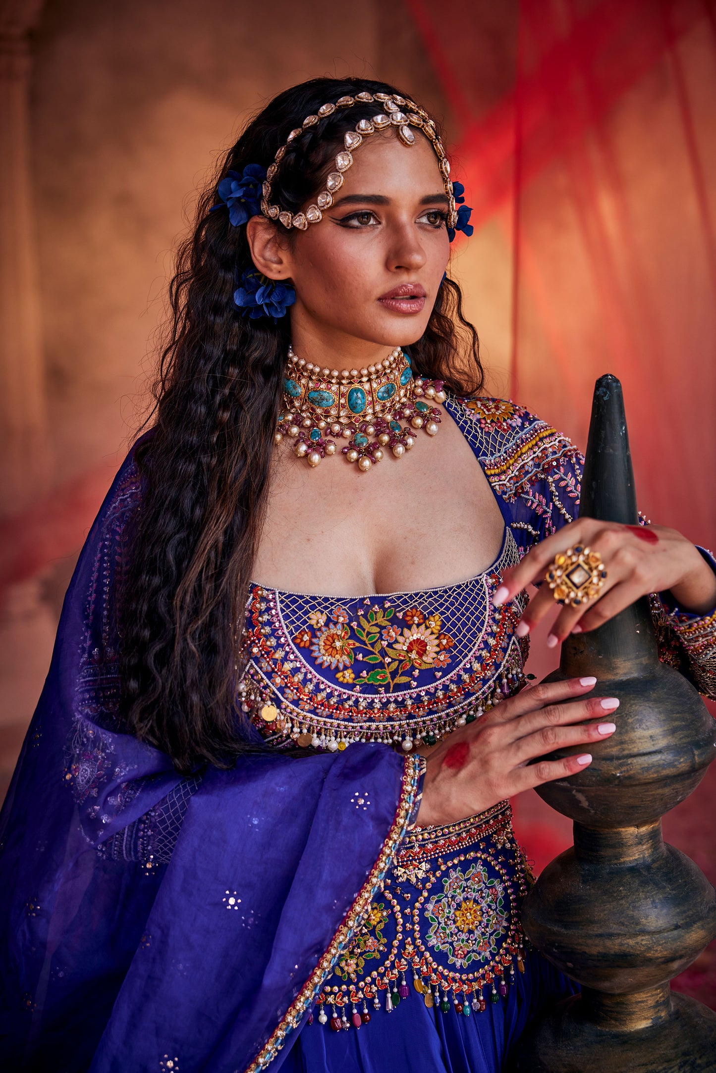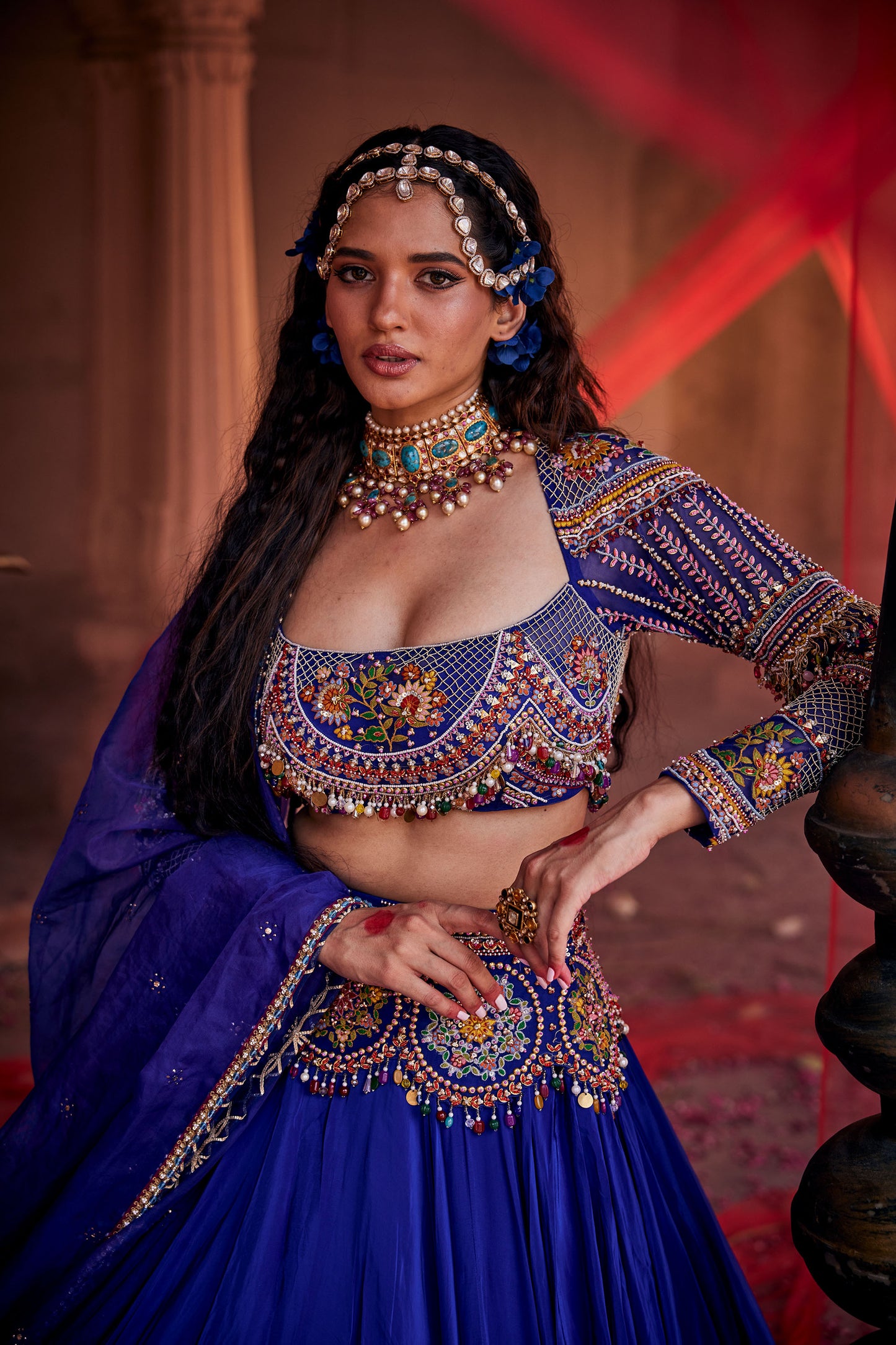 Royal Blue hand-embroidered lehenga set