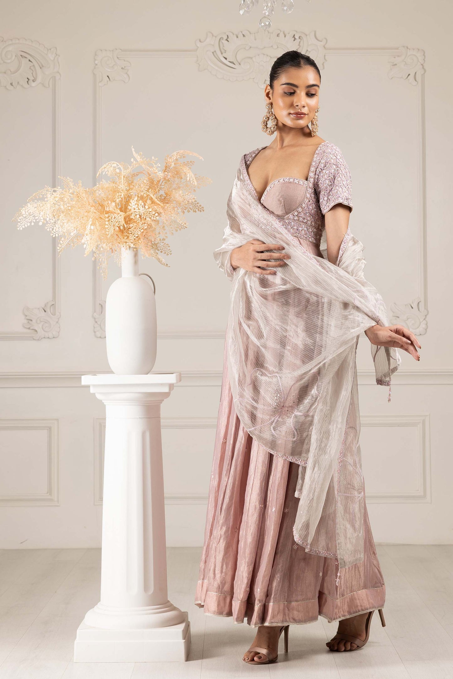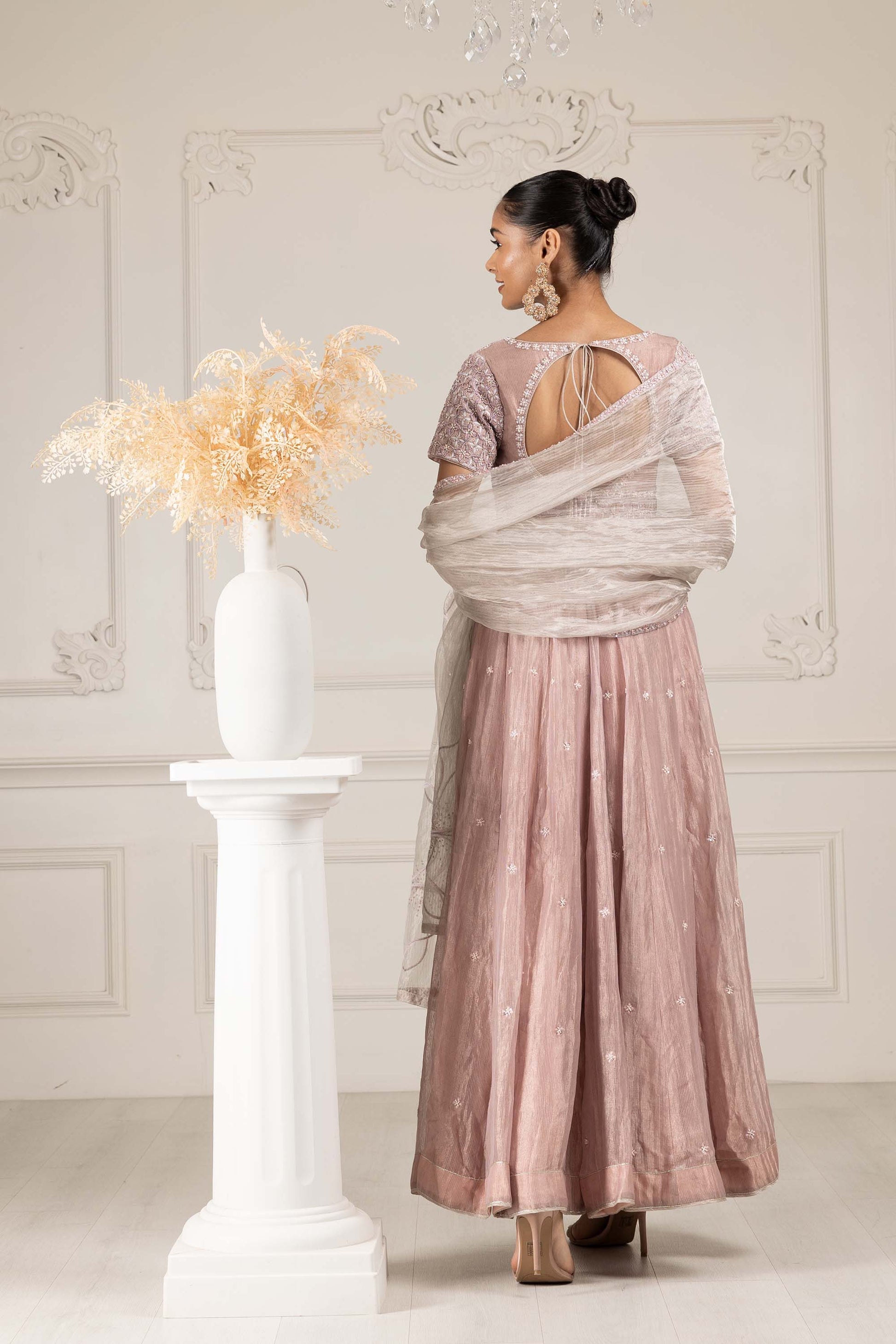 Royalty Peach Organza Thread & Pearl Cocktail Kalidar Set