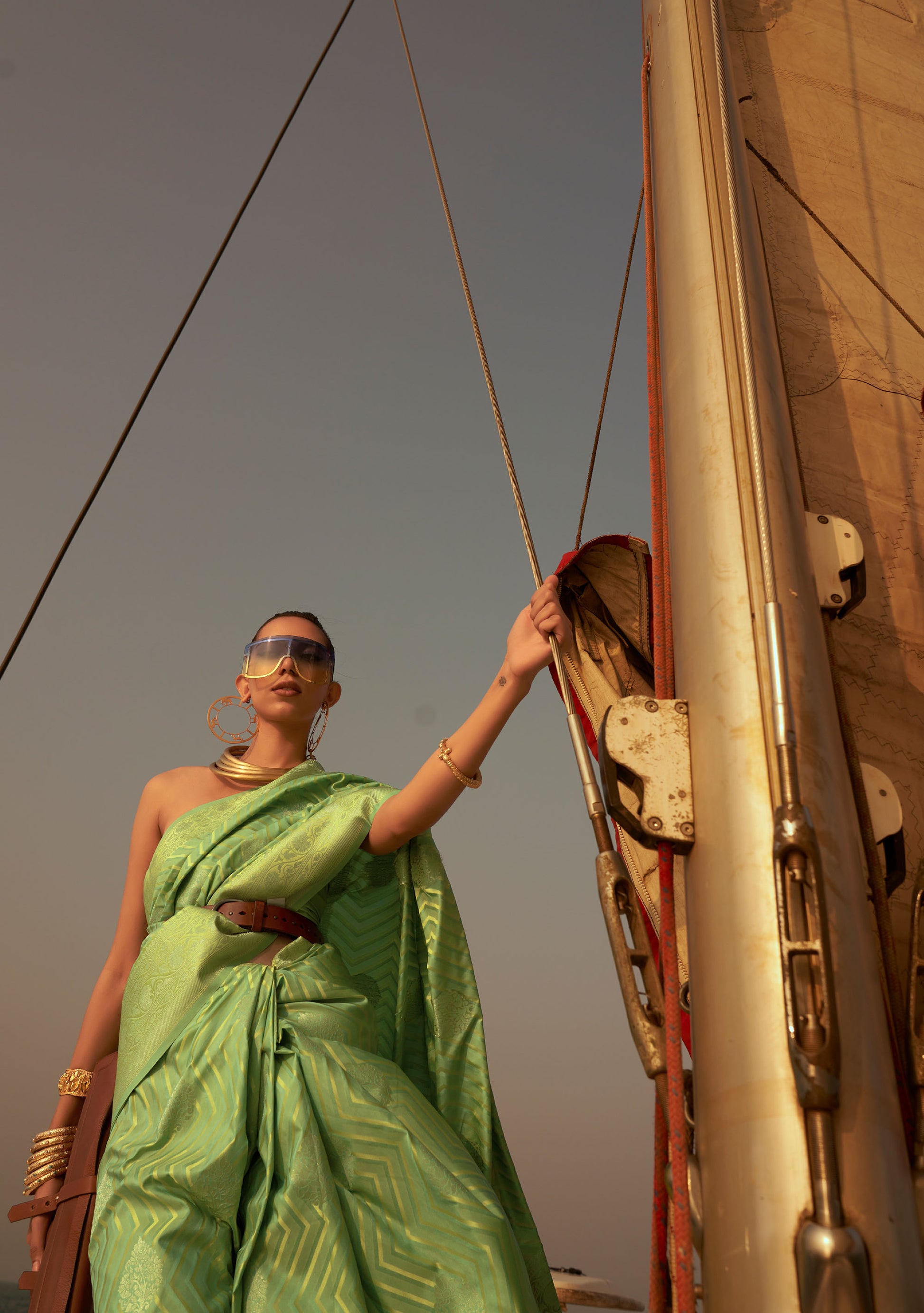 Sage Green Kingston Pure Satin Nylon two tone saree