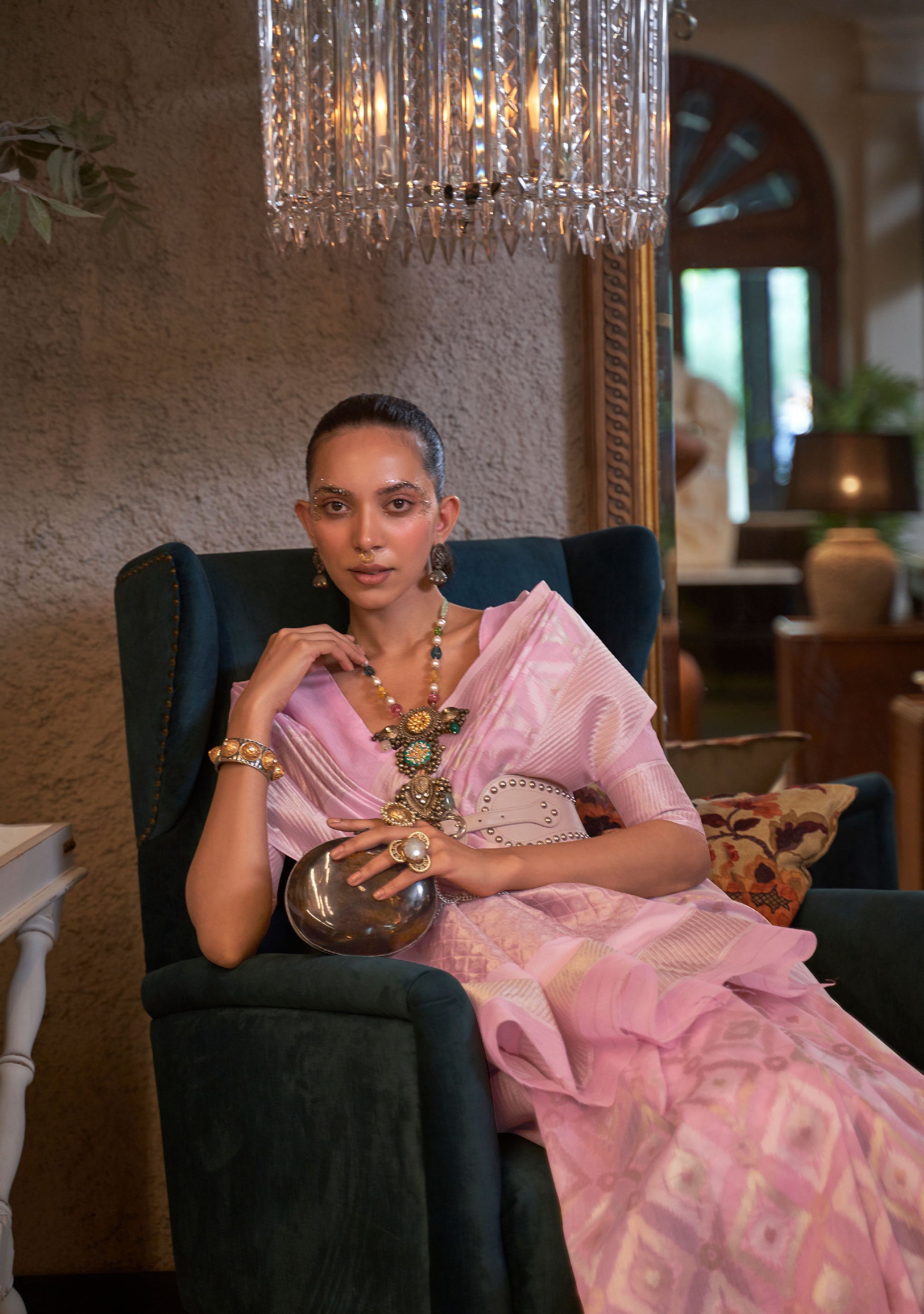 Soft Pink Kaapas Linen Handloom Saree