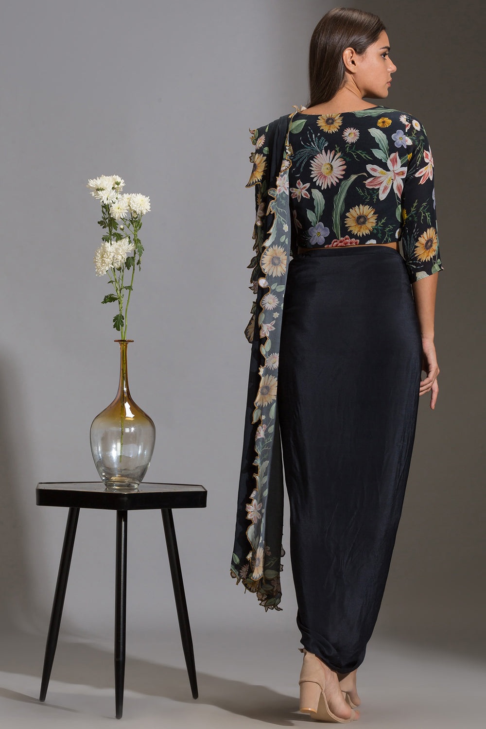 Gulista Floral Cutwork Pre Draped Saree