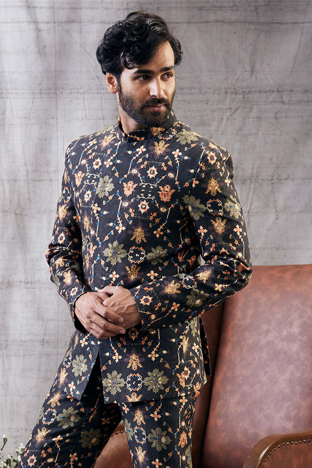 Black Zahra Bandhgala Jacket And Pant In Malaysian Silk.