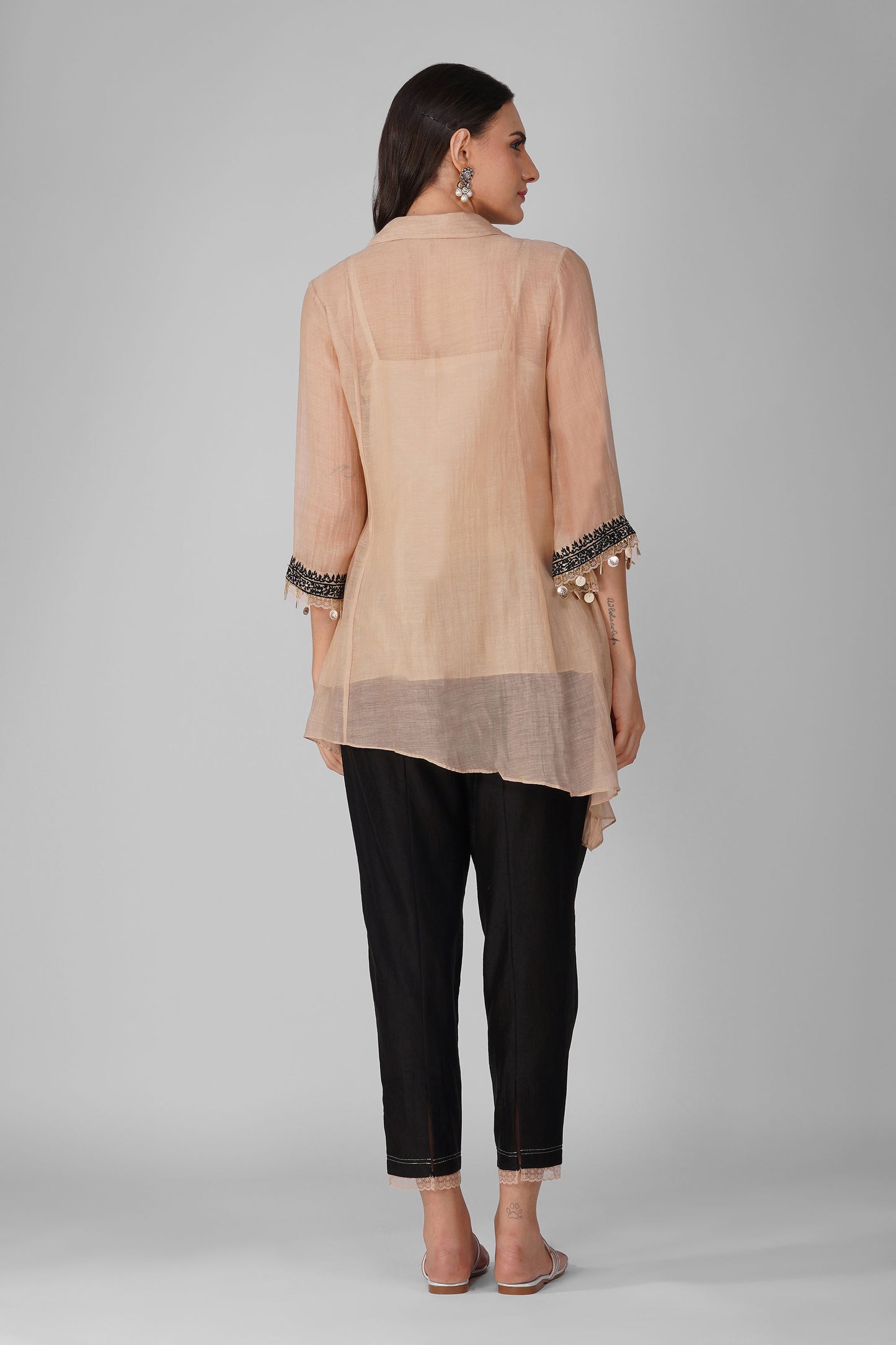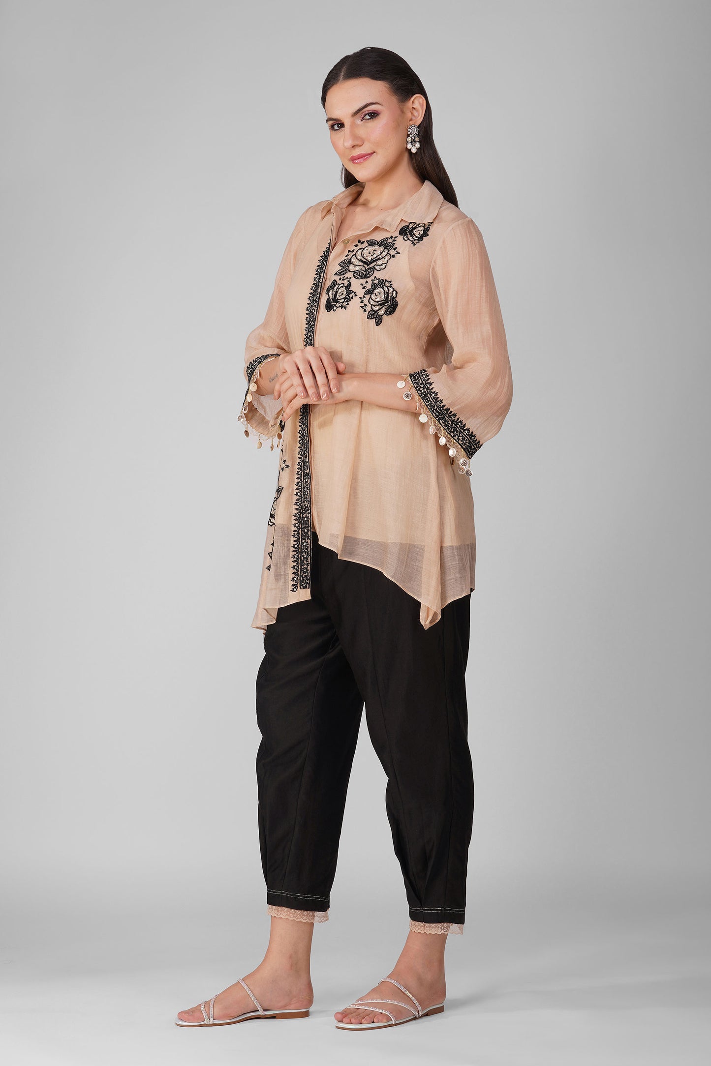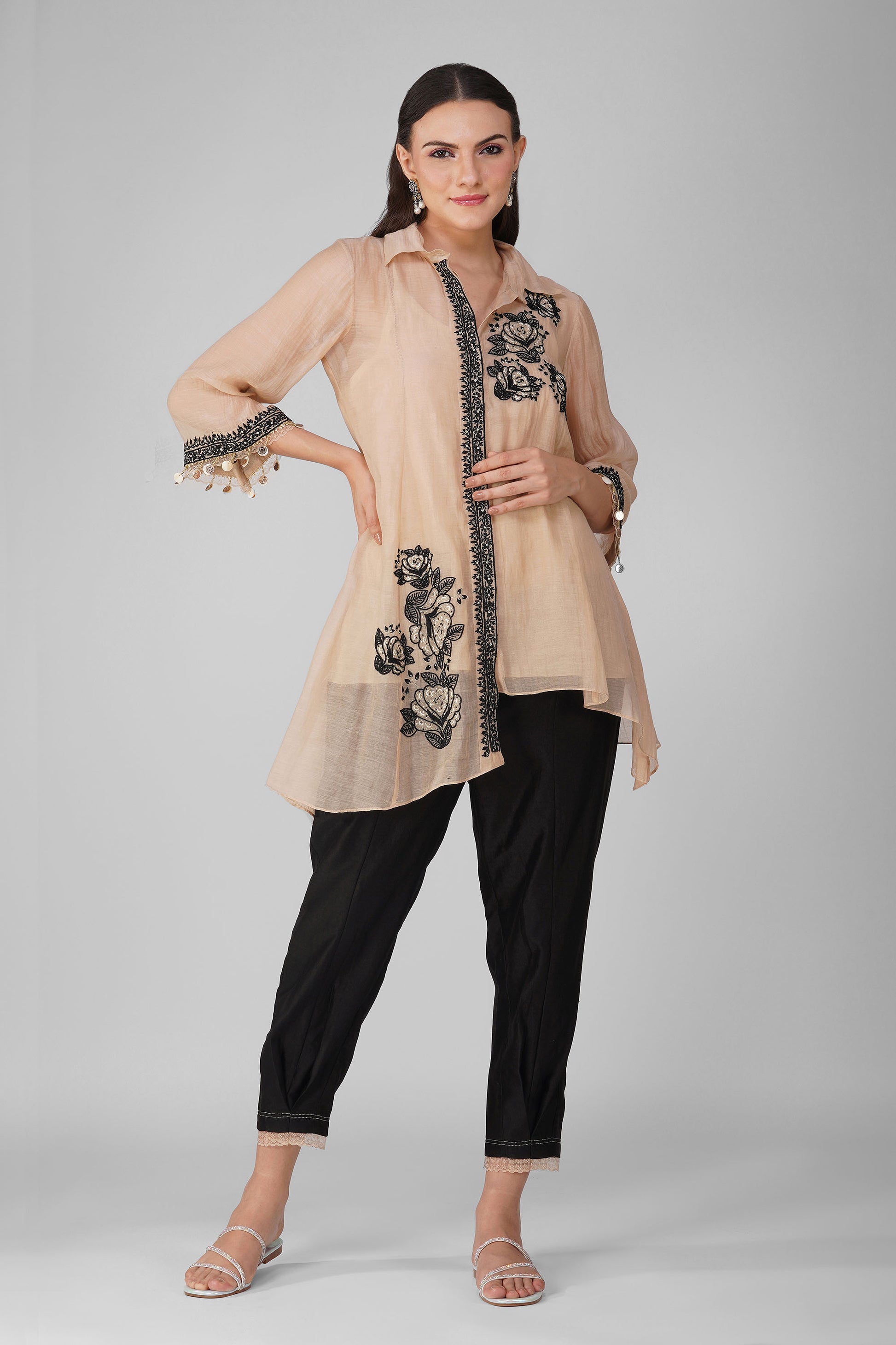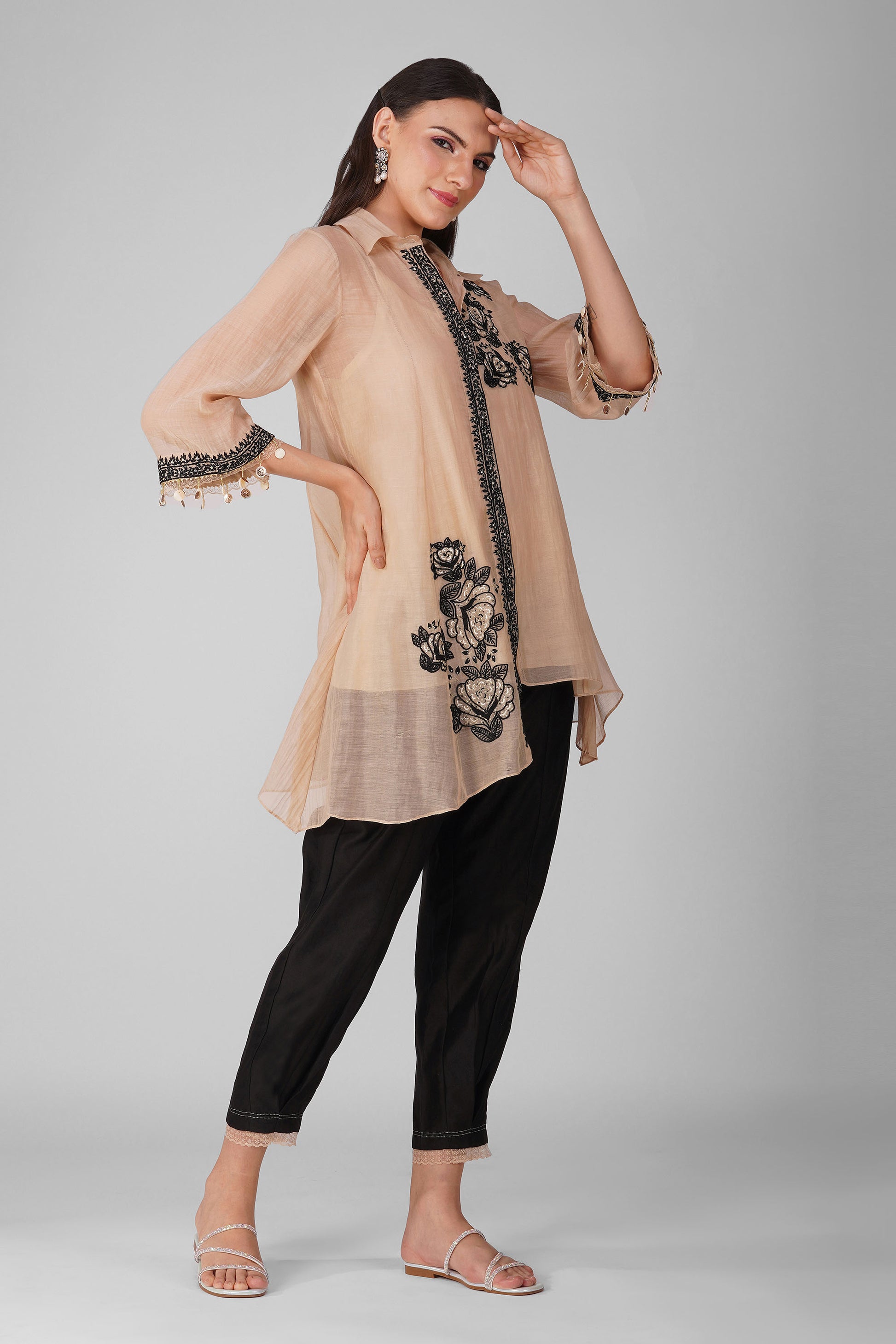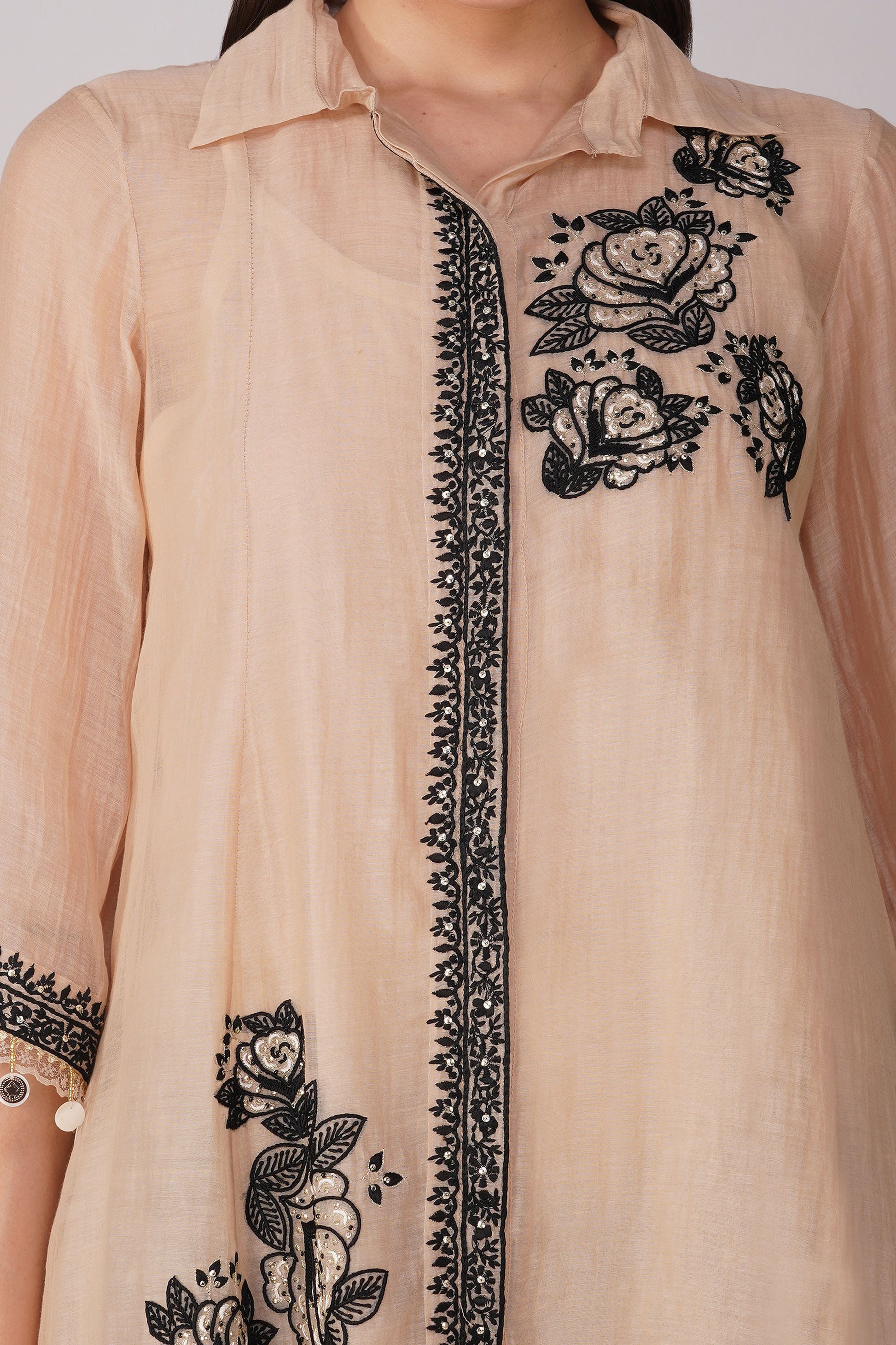Starry Rose Asymmetric Kora Black Shirt Set