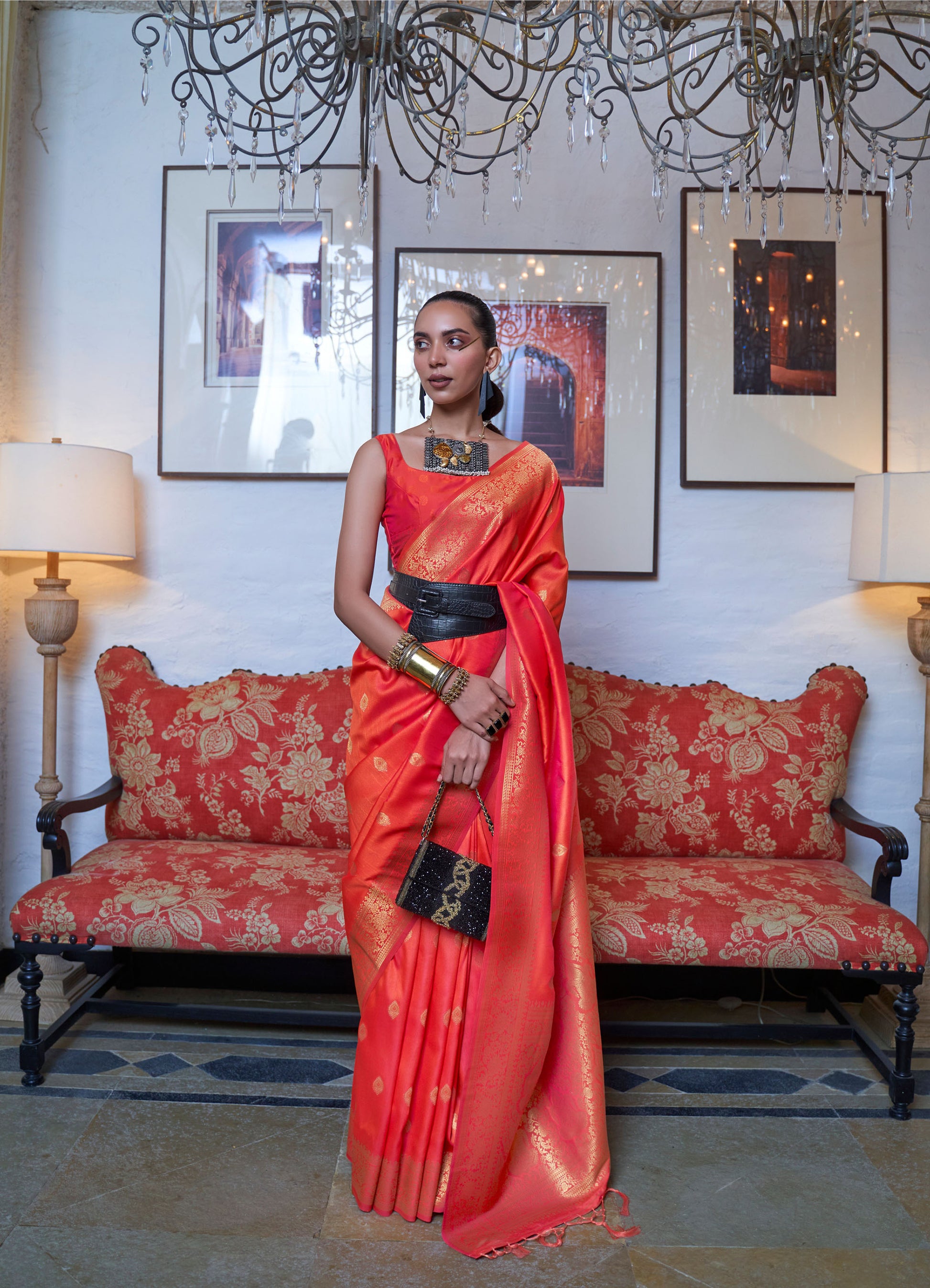 Tangerine Orange Kanyaatha Moss weave handloom silk saree