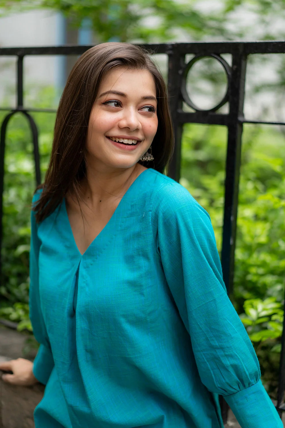 Elevate your summer wardrobe with our Teal Green Pure Cotton Co-ord Set. This stylish outfit features wrist-length sleeves and a single front pleat, providing extra comfort and breeziness. Made from pure cotton, it ensures maximum breathability and ease. Perfect for any casual outing, this co-ord set keeps you cool and effortlessly chic all season long.