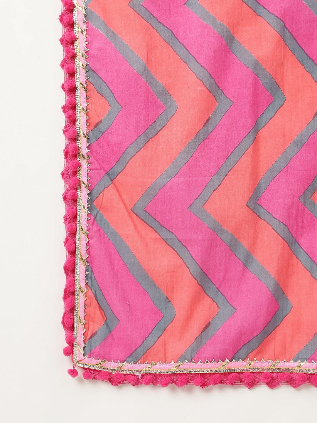 If you are looking for party wear dress try this Turquoise Blue Cotton Anarkali Skirt set with dupatta is best Choice for you. It is suitable for small function and traditional look. It has shoulder strip which is covered with silver Sitara work and front neck Golden stone button. Over all floral printed with gota patti work. This product presenting with Sharara to which has gota patti and Sitara work in large placement. It is self-printed Set dupatta has Croatia lace it looking gorgeous. You feel like a queen with this set. It colored has bright so it useful in festival.