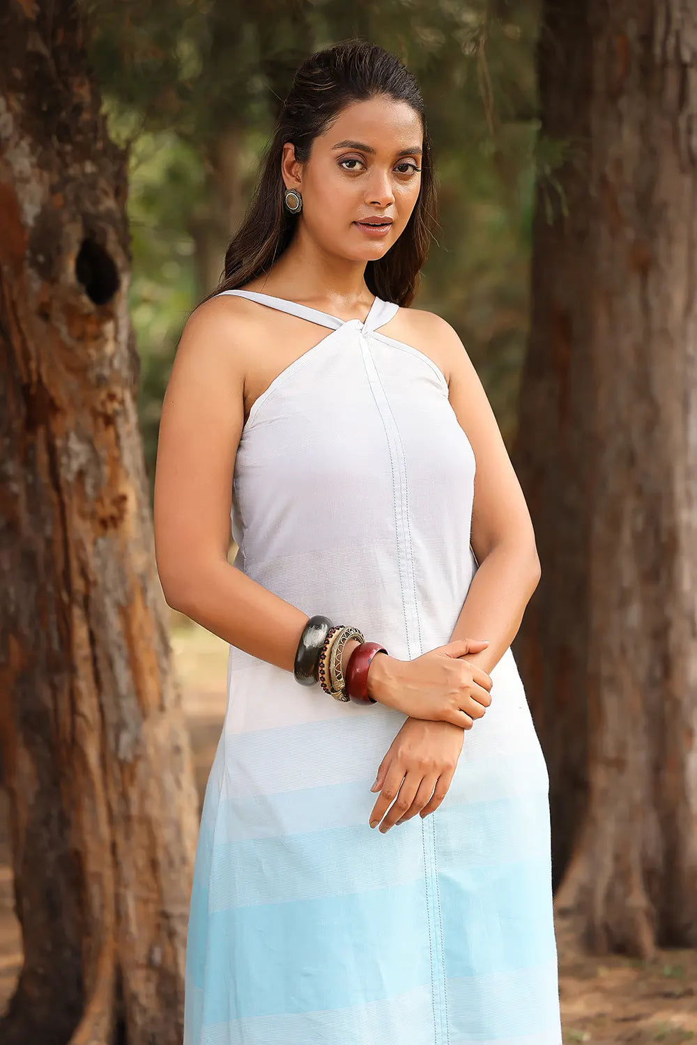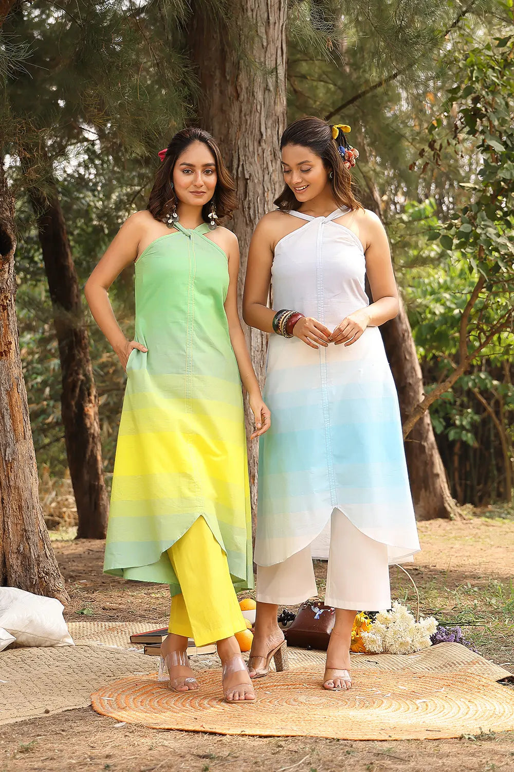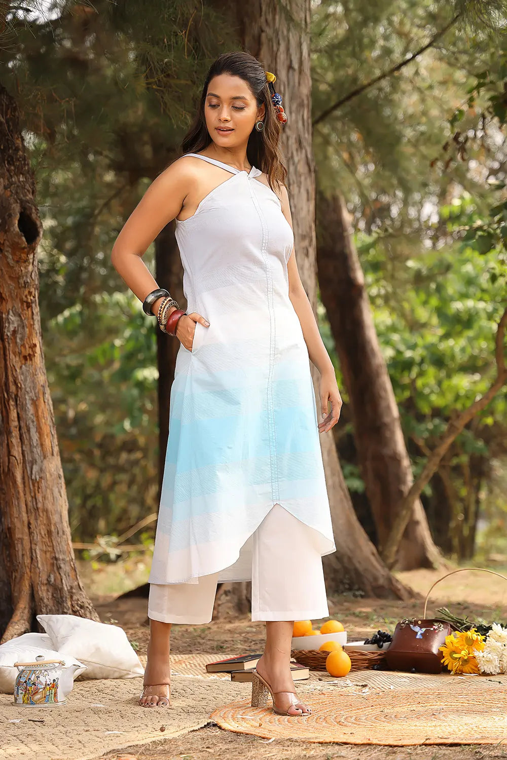 White & Blue Stripes Pure Cotton Co-ord-Set