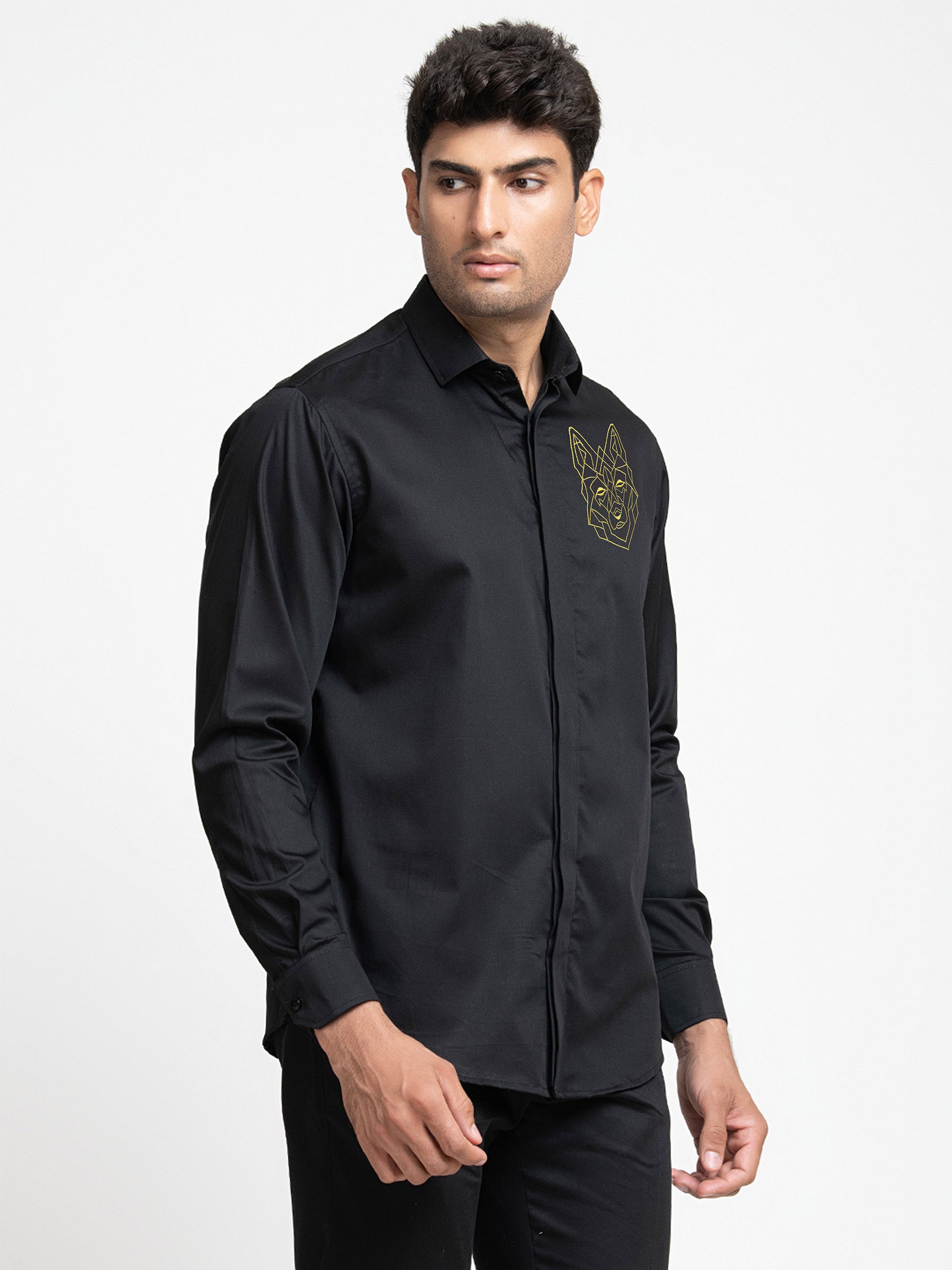 Black Cotton satin Petro wolf Shirt
