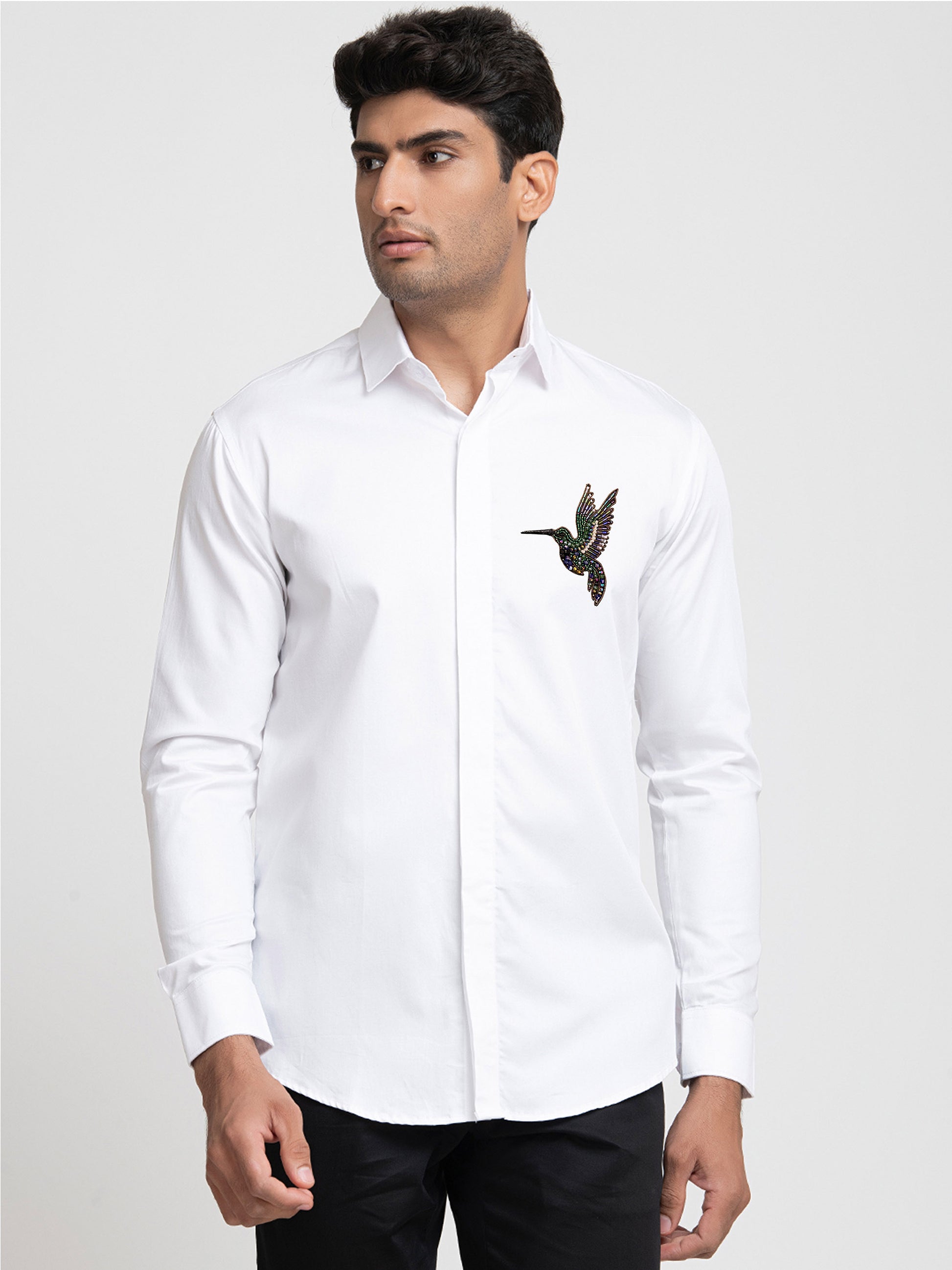 The addition of lustrous pearl beads enhances its sophisticated appeal. The concealed buttons maintain a seamless look, while ensuring comfort. Glide captures the essence of timeless beauty and modern design, making it a must-have addition to your wardrobe