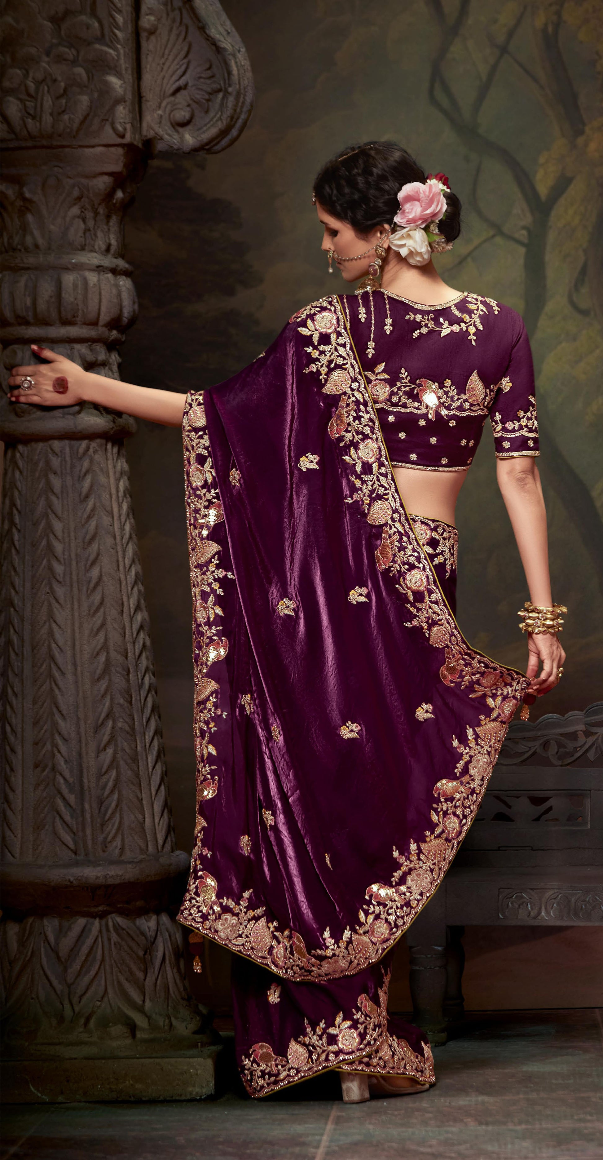 wine Sequins Festive Naveli Saree