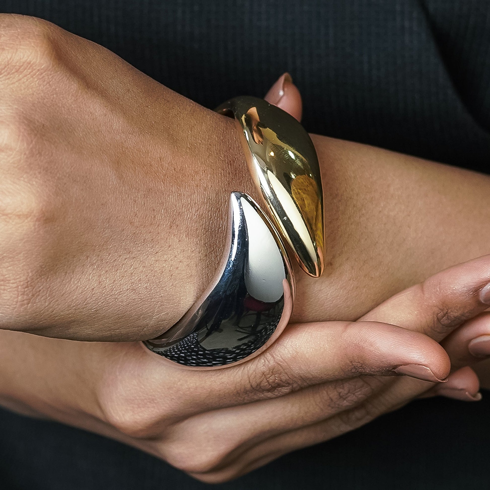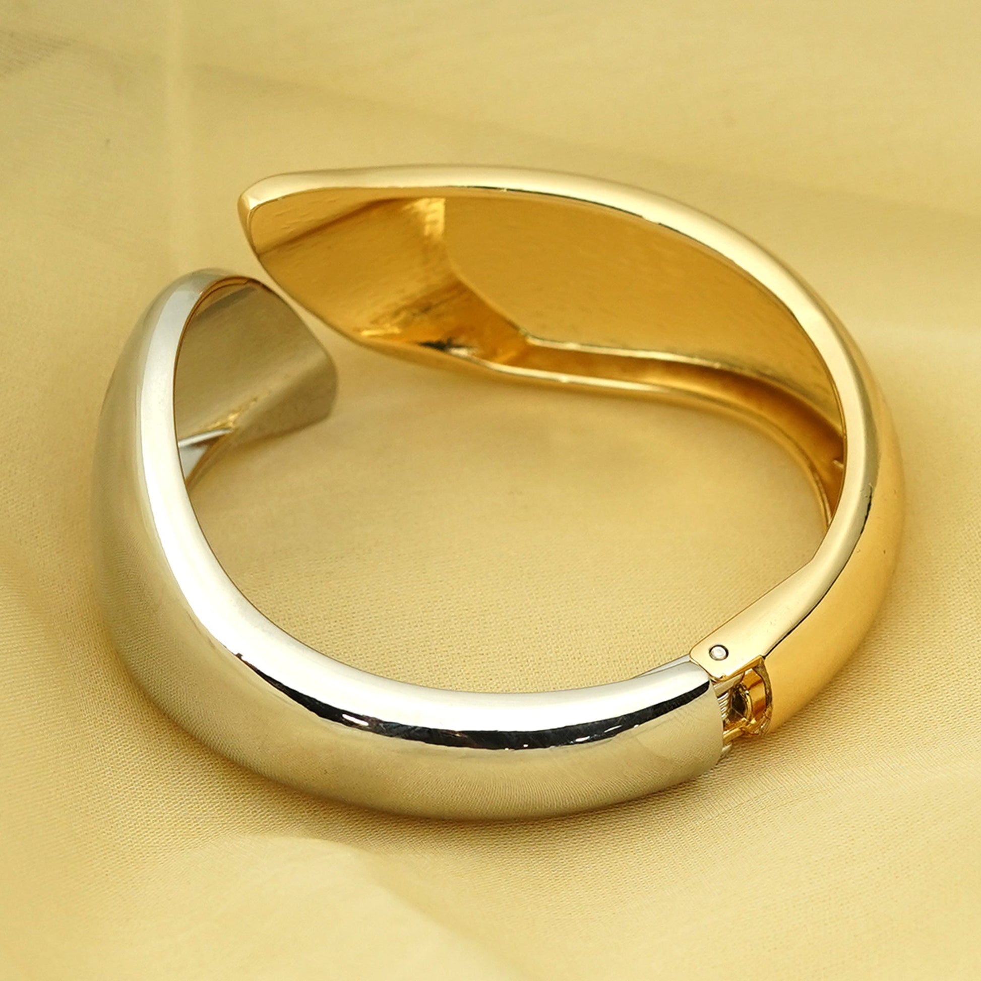 Zevar Club Gold & Silver Dual Tone Stainless Steel Tarnish Free Waterproof Glossy Curved Openable Statement Bracelet for Women